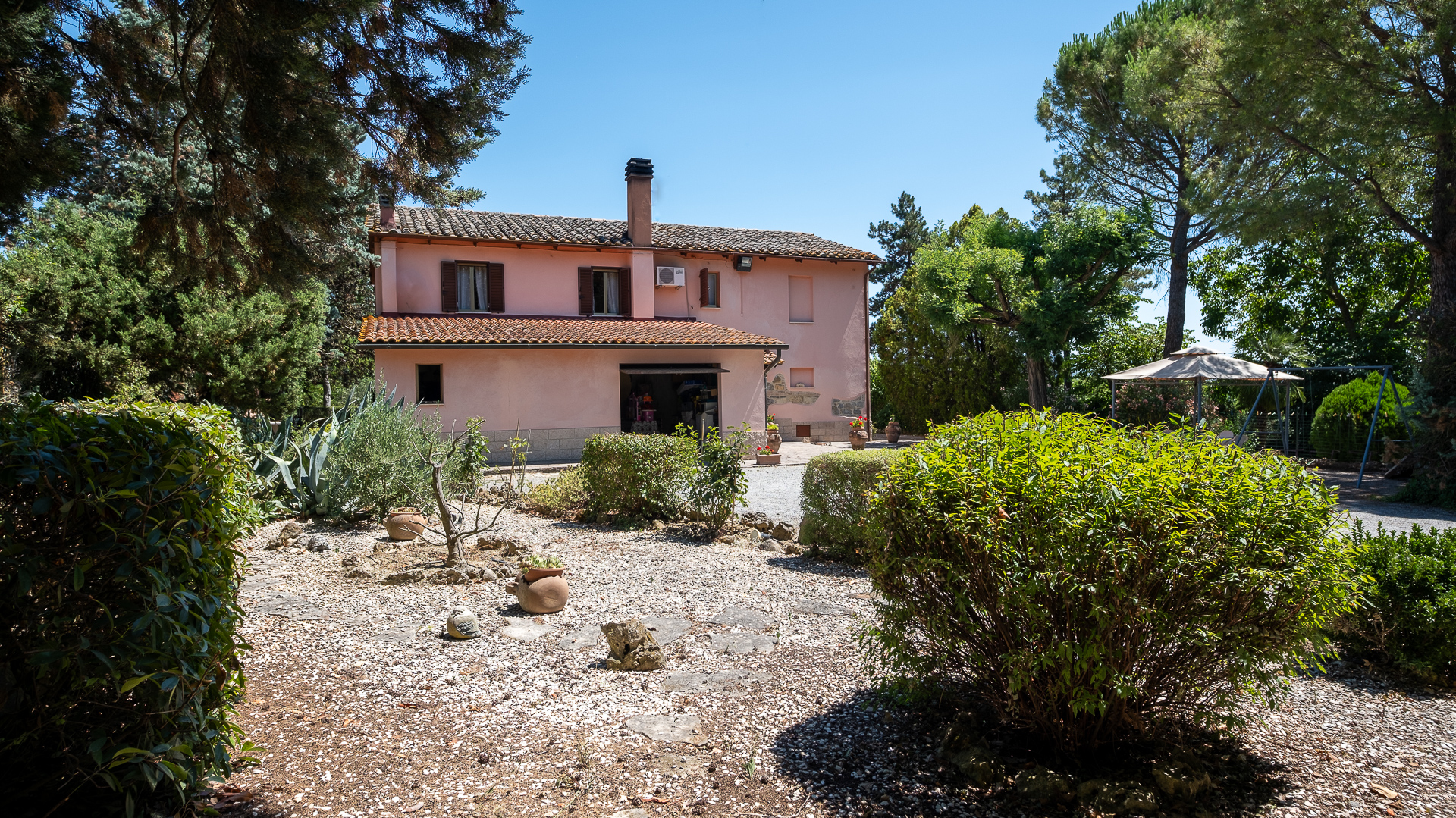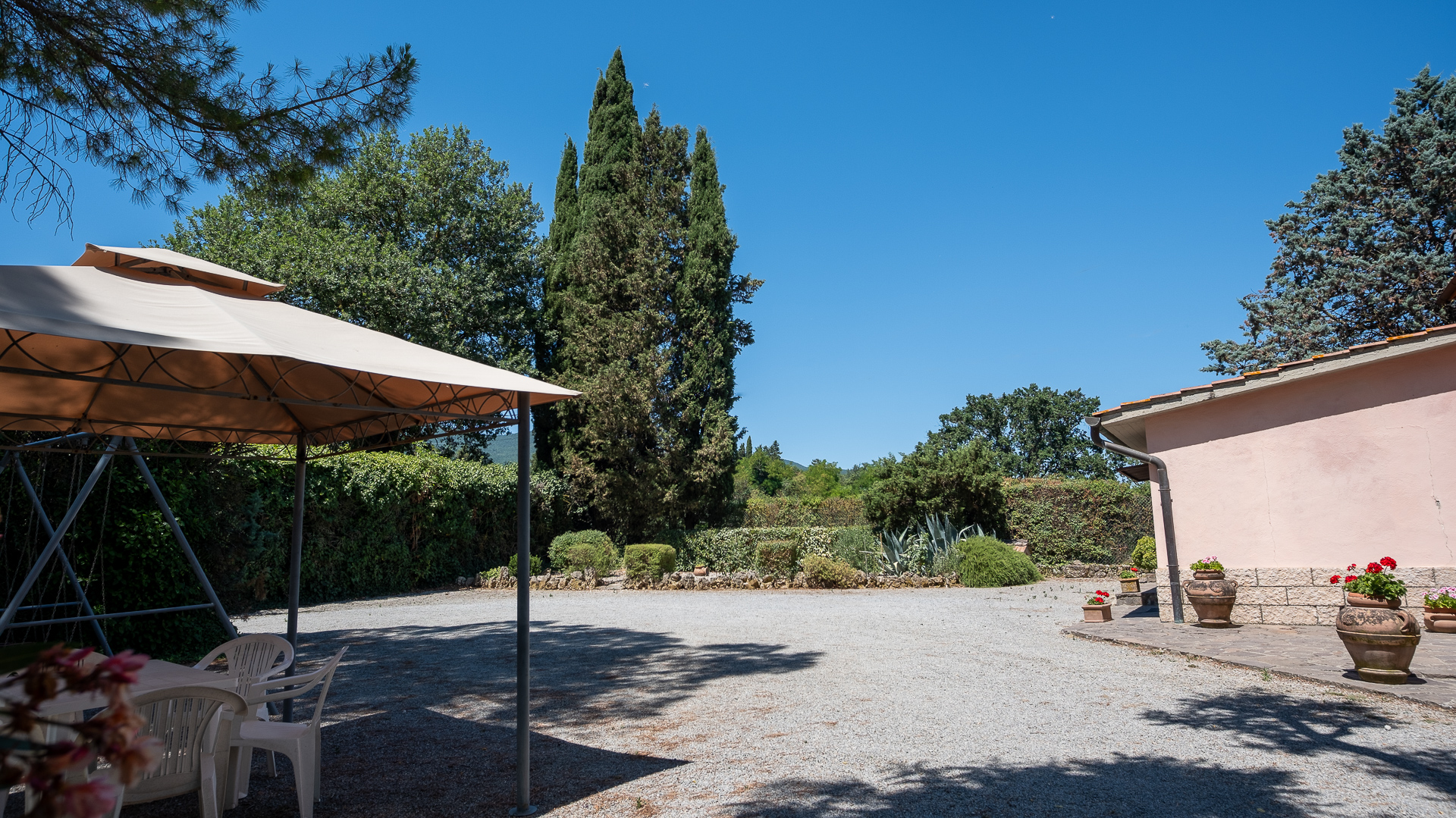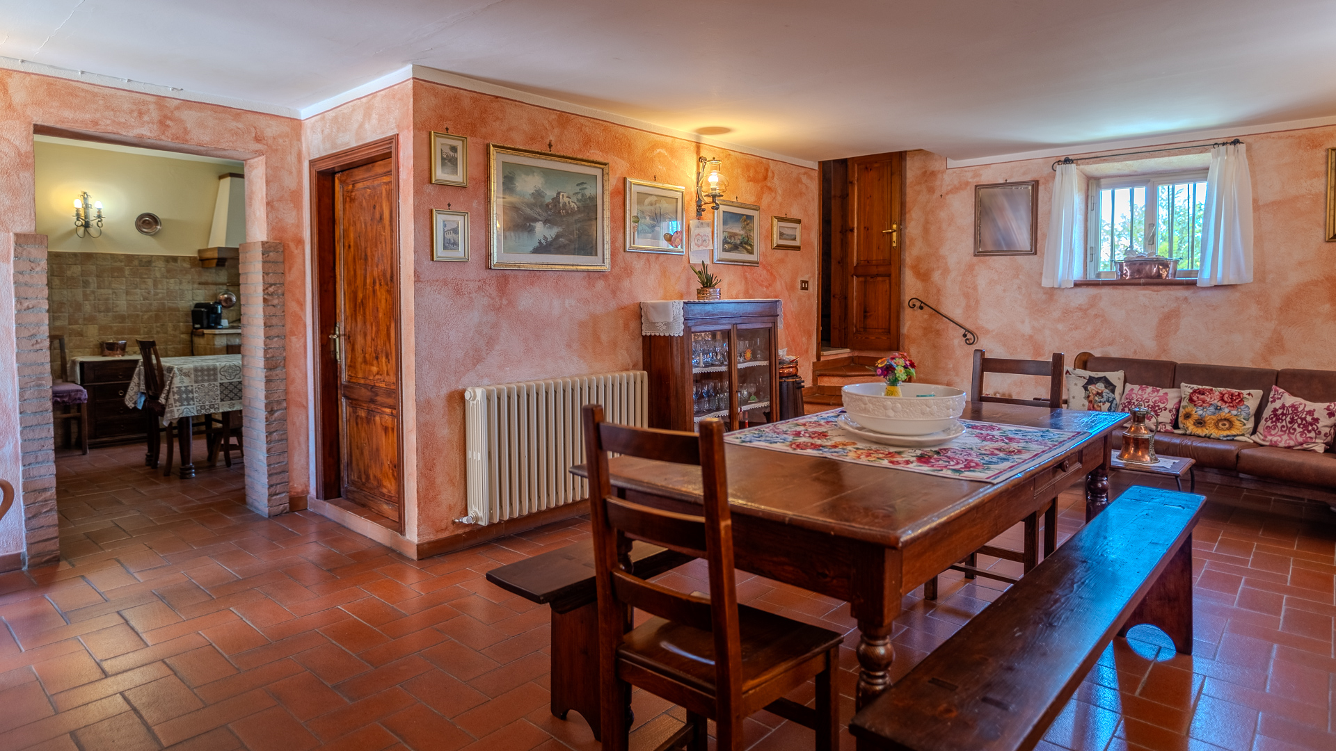 Casale Pollaiolo to nieruchomość zanurzona w pięknej okolicy Cetona, uroczej średniowiecznej wioski położonej w prowincji Siena w Toskanii, znanej z malowniczego pagórkowatego krajobrazu i bogatej historii kultury. Nieruchomość składa się z głównego budynku i aneksu rolniczego. Główny budynek, o powierzchni 193 m2 na 2 poziomach, składa się z salonu, kuchni / jadalni z charakterystycznym kominkiem, łazienki i pomieszczenia gospodarczego pod schodami na parterze. Wewnętrzne schody łączące prowadzą na piętro, gdzie znajdują się 3 sypialnie, 1 łazienka i 2 kolejne pokoje używane jako salon z kominkiem i gabinet; piwnica w piwnicy. W sąsiedztwie domu znajdują się 2 magazyny o łącznej powierzchni 28 m2 i garaż o powierzchni 35 m2 z łazienką. Nieruchomość obejmuje aneks rolniczy o powierzchni 39 m2, który ma zostać odrestaurowany, oraz otaczający prywatny teren o powierzchni 1,7 ha, składający się z ogrodu na dziedzińcu, małego gaju oliwnego z około 60 roślinami, gruntów ornych i ogrodu warzywnego.