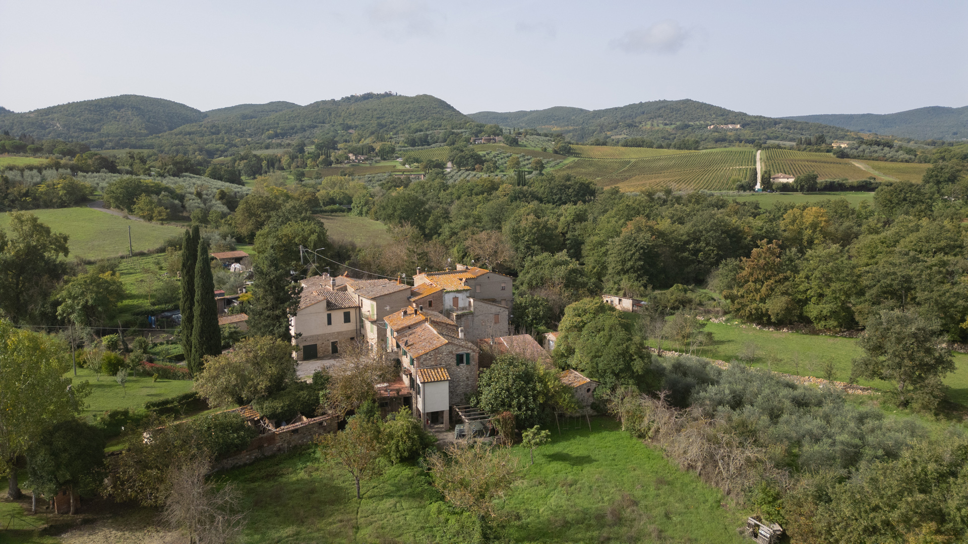 Dom wiejski znajduje się w Palazzone, charakterystycznej wiosce w gminie San Casciano dei Bagni. Tutaj można w pełni cieszyć się toskańskim krajobrazem, który na granicy z Umbrią i Lacjum charakteryzuje się ciągiem falistych wzgórz, gdzie złocista zieleń drzew oliwnych i rzędy winorośli tworzą krajobraz, który jest wyjątkowy na świecie. Tutaj można odkrywać i wędrować po drugorzędnych drogach, wśród dzikiej i surowej przyrody oraz pól pszenicy i słoneczników. Willa znajduje się zaledwie kilka kilometrów od autostrady (punkt poboru opłat Chiusi – Chianciano oddalony jest o 15 km, a punkt poboru opłat Fabro o 11 km). W Chiusi znajduje się również stacja kolejowa. Dojazd do Rzymu i Florencji zajmuje 90 minut. W promieniu 20 km znajduje się kilka uzdrowisk oraz wiele wiosek i miast z zabytkami historycznymi i kulturalnymi.