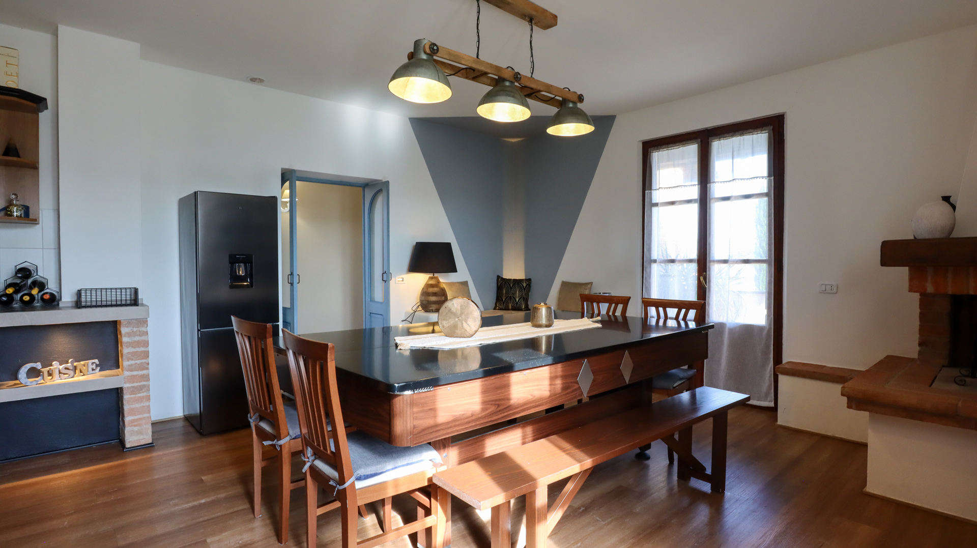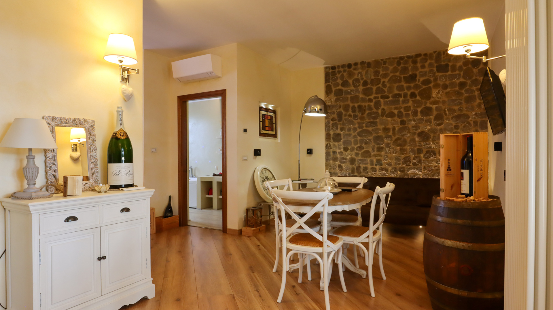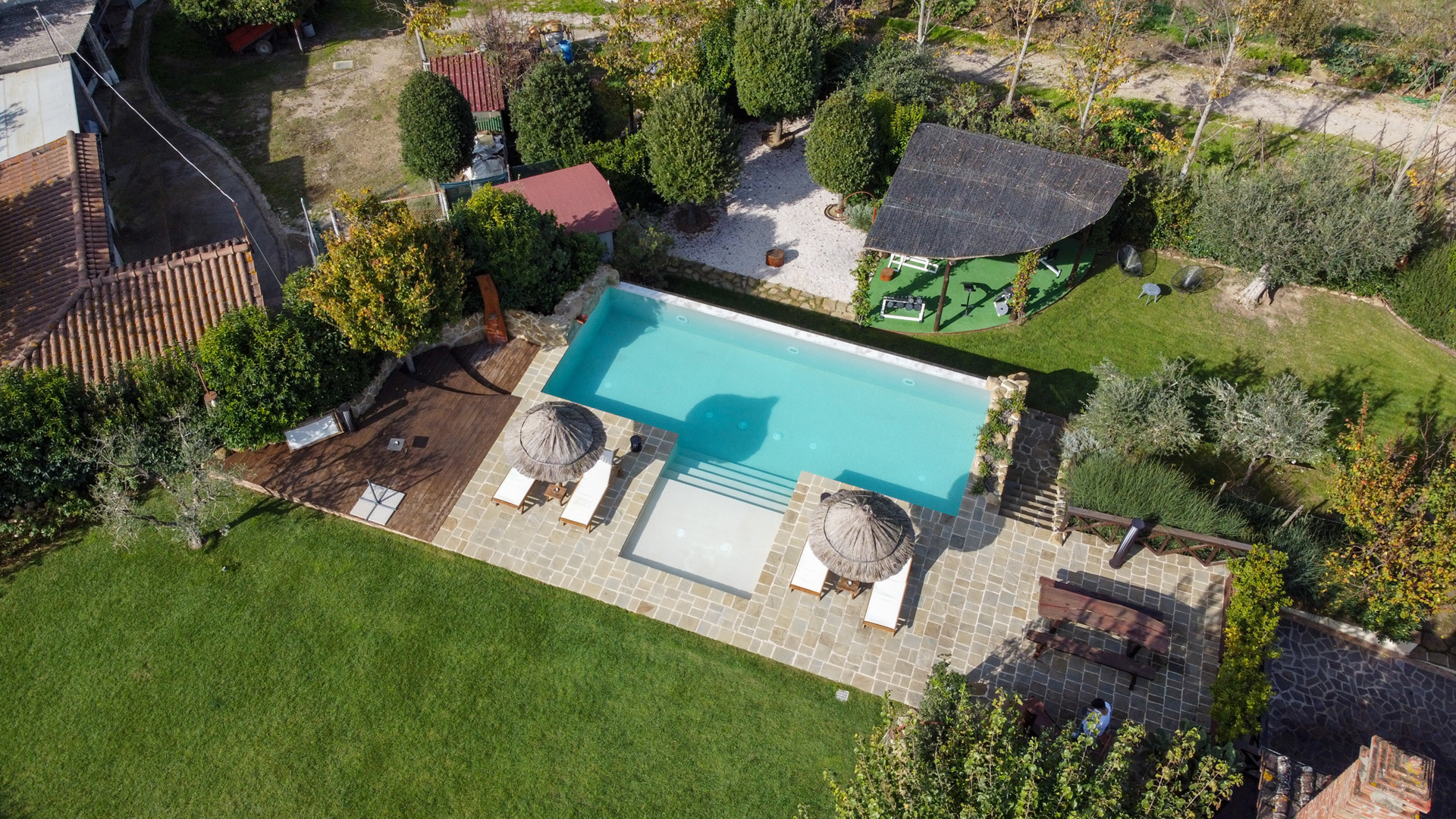 Ta wspaniała posiadłość została odbudowana z ruiny pod koniec lat 80. XX wieku, zachowując cechy typowego lokalnego gospodarstwa rolnego. Później podjęto dalsze wysiłki renowacyjne i ulepszenia, ostatnie w 2022 r., które obejmowały również renowację basenu i ogrodu. Gospodarstwo składa się z 4 apartamentów, każdy z osobnym wejściem. Pierwszy apartament na parterze z wieloma wejściami oferuje jadalnię, kuchnię, 2 sypialnie i 1 łazienkę. Drugi apartament – również z wejściem na parterze – składa się z 1 sypialni, 1 aneksu kuchennego z salonem i 1 łazienki. Trzeci apartament z wejściem na parterze składa się z 1 sypialni, 1 aneksu kuchennego z salonem i 1 łazienki. Czwarty i ostatni apartament znajduje się na drugim poziomie i jest dostępny po schodach prowadzących na mały taras, z którego wchodzi się do salonu z aneksem kuchennym, a następnie do 2 sypialni i 1 łazienki. Na poziomie piwnicy znajdują się dwa duże pokoje, magazyn/piwnica. Nieruchomość otoczona jest pięknym i zadbanym ogrodem, w tym wspaniałym basenem bez krawędzi o wymiarach 10 x 4 metry, całkowicie odnowionym w 2022 roku, siłownią, dwiema strefami relaksu i podgrzewaną wanną z hydromasażem. Nieruchomość uzupełniają dwa miejsca parkingowe.