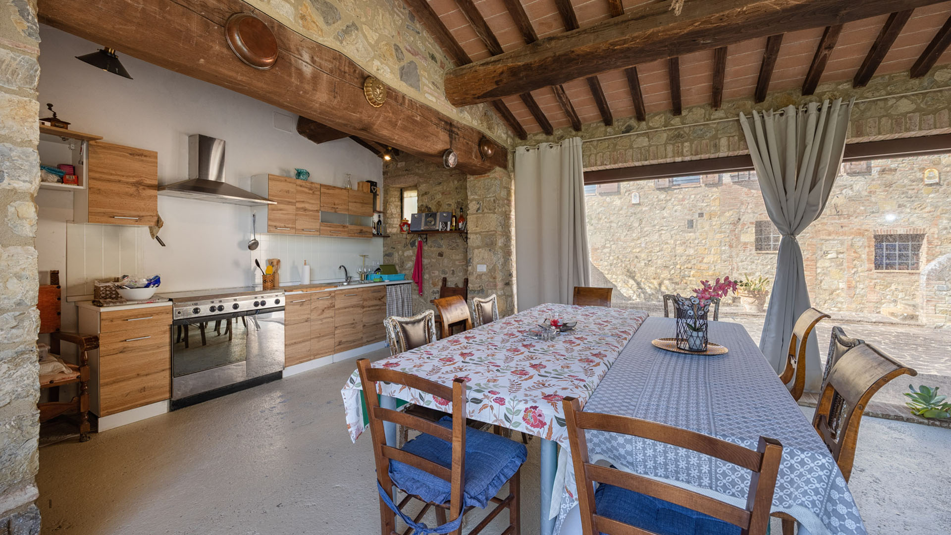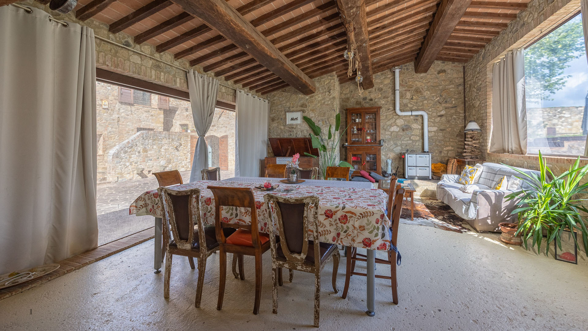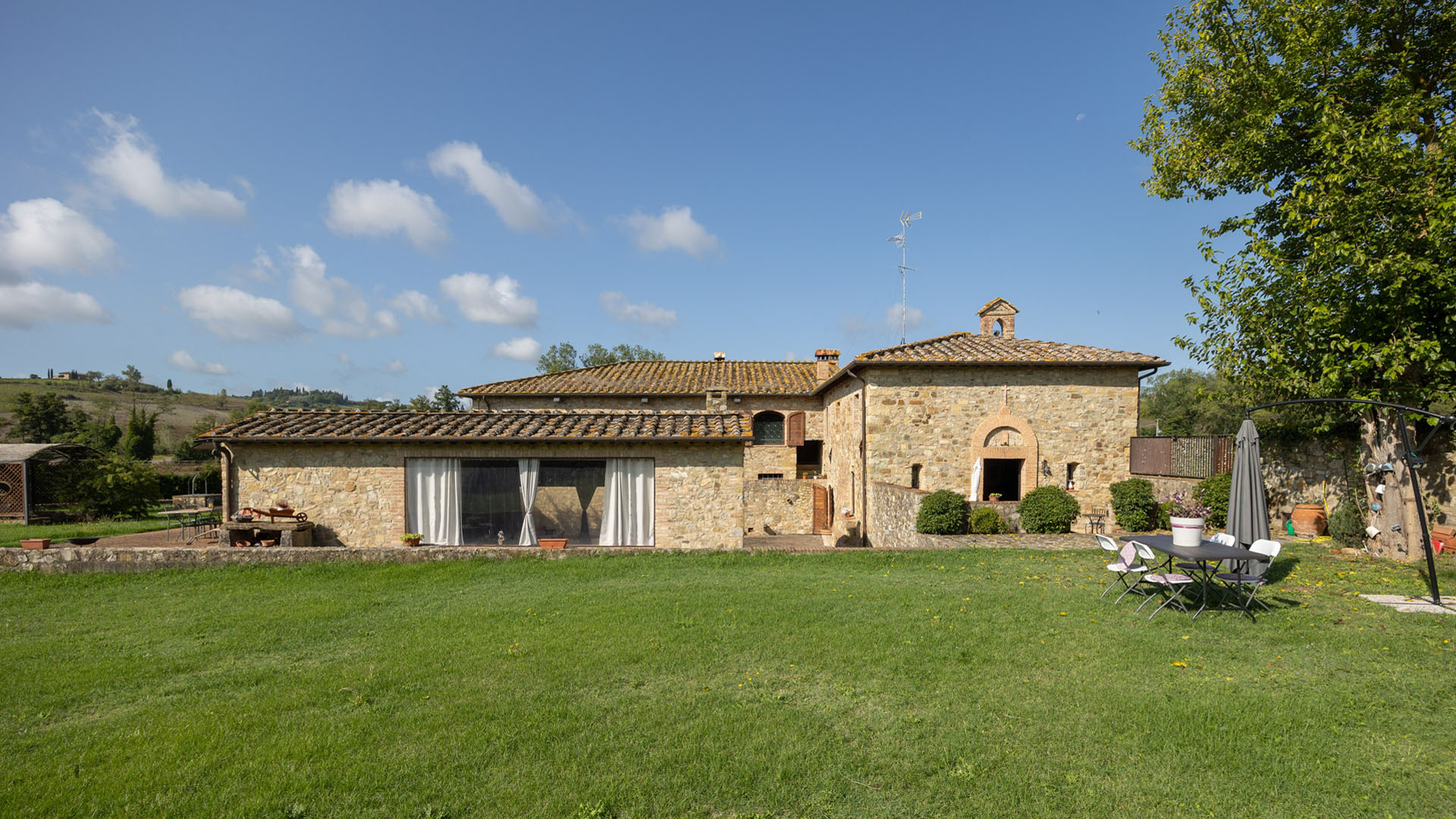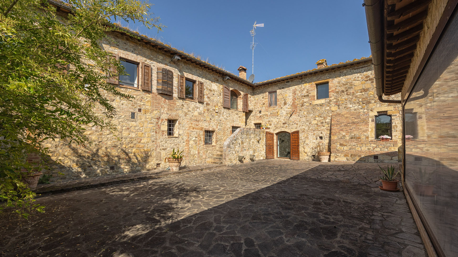W niewielkiej odległości od Sieny, w samym sercu regionu Chianti, na sprzedaż jest ta wspaniała posiadłość w tradycyjnym toskańskim stylu. Pochodząca z około 1000 roku posiadłość została niedawno odnowiona z wielką starannością. Posiadłość składa się z głównego kamiennego domu, dwóch pensjonatów i pięknego ogrodu krajobrazowego. Główne gospodarstwo, o łącznej powierzchni 890 mkw, obejmuje siedem oddzielnych jednostek mieszkalnych, wśród których znajduje się rezydencja właściciela. Główna rezydencja, mierząca 492 mkw. na czterech poziomach, otwiera się na parterze z eleganckim salonem z kominkiem, podgrzewanym krytym basenem, siłownią, kuchnią, jadalnią, drugim salonem, łazienką dla gości i pralnią. Na pierwszym piętrze – dostępnym przez wspaniałe designerskie schody – znajduje się salon z kominkiem, gabinet i część sypialna składająca się z głównej sypialni z garderobą i łazienką, dwóch dodatkowych sypialni (jedna z poddaszem) i drugiej łazienki. W piwnicy znajduje się piwniczka na wino. Główny dom uzupełnia sześć w pełni odnowionych, niezależnych apartamentów. Jeden z nich powstał z dawnej kaplicy i jest obecnie uroczą otwartą przestrzenią z kuchnią i częścią dzienną na parterze oraz sypialnią z łazienką na antresoli. Pozostałe apartamenty, o powierzchni od 43 do 86 m2, składają się z części dziennej z kuchnią, sypialni i łazienki. Obok głównego budynku znajdują się dwa pensjonaty, każdy o powierzchni 60 mkw. Pierwszy z nich obejmuje salon, kuchnię, sypialnię i łazienkę. Drugi to apartament typu studio z aneksem kuchennym i łazienką, wszystkie na jednym poziomie. Sprzedaż obejmuje starannie utrzymany park o powierzchni około 4 000 mkw.