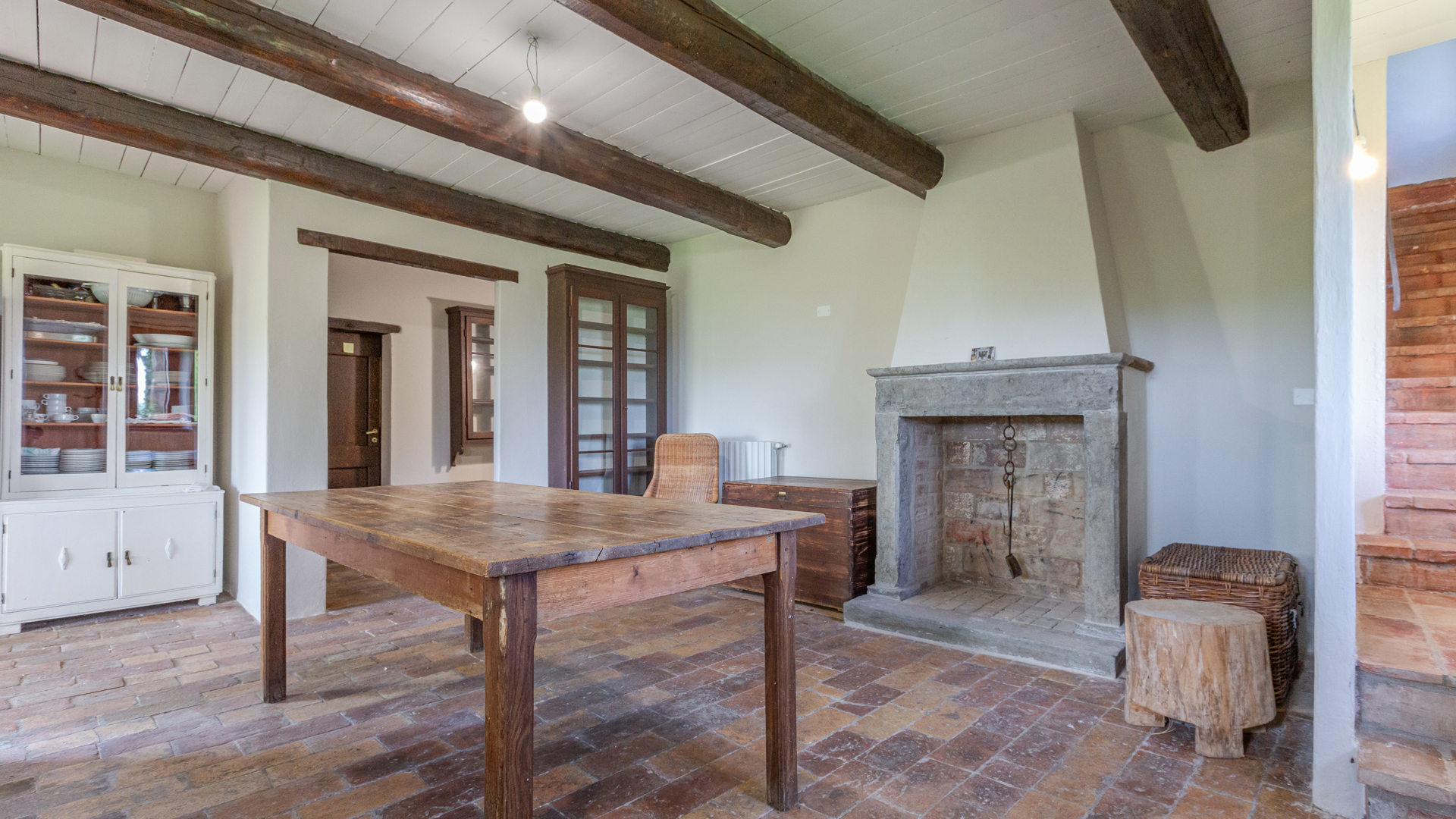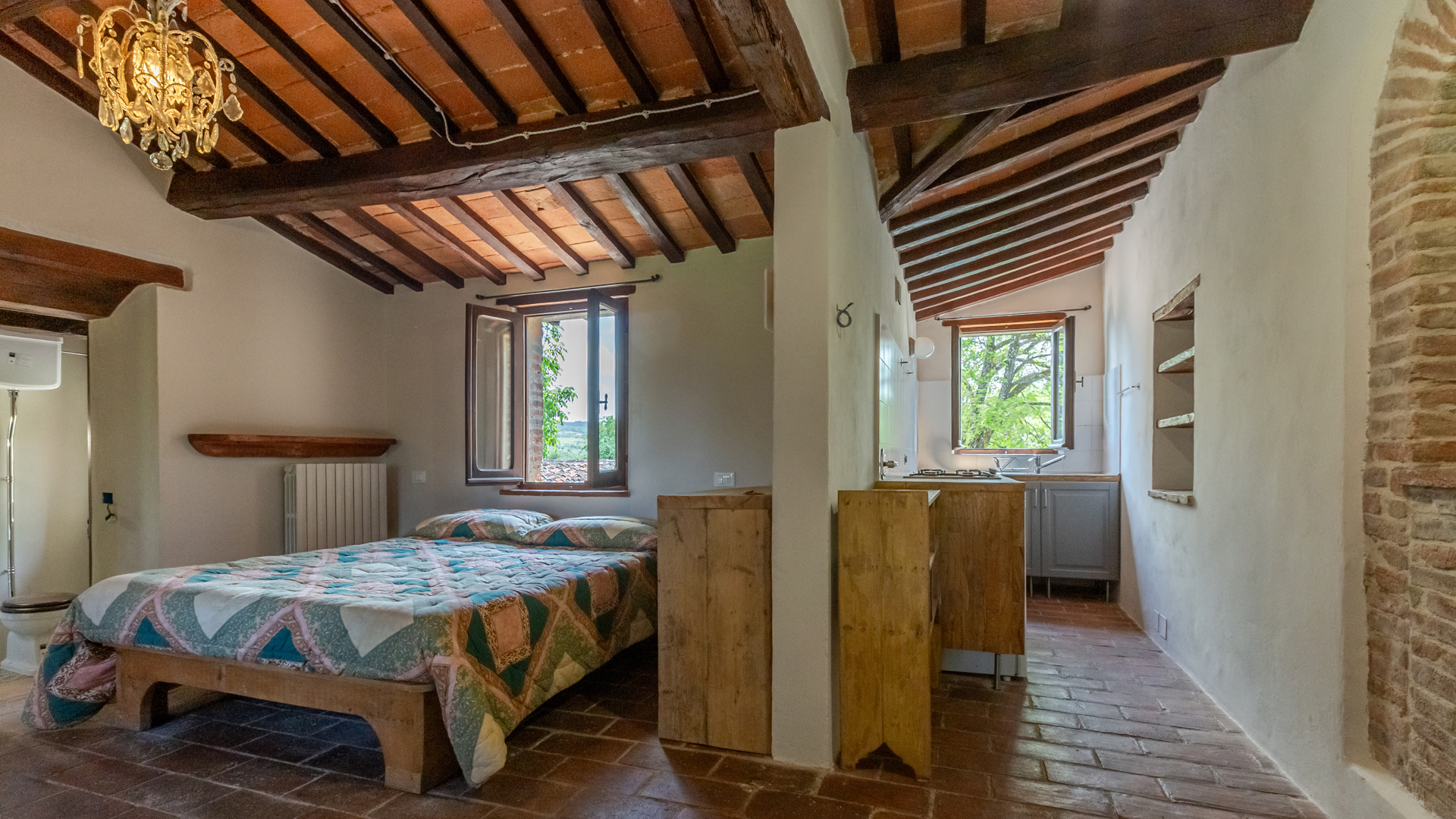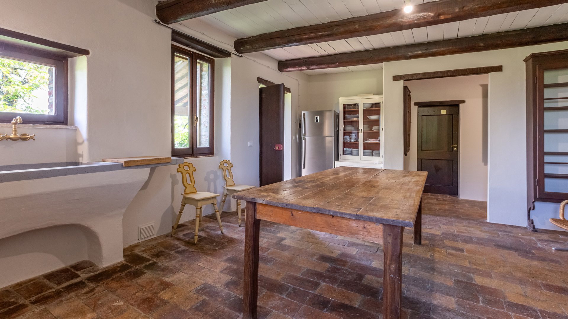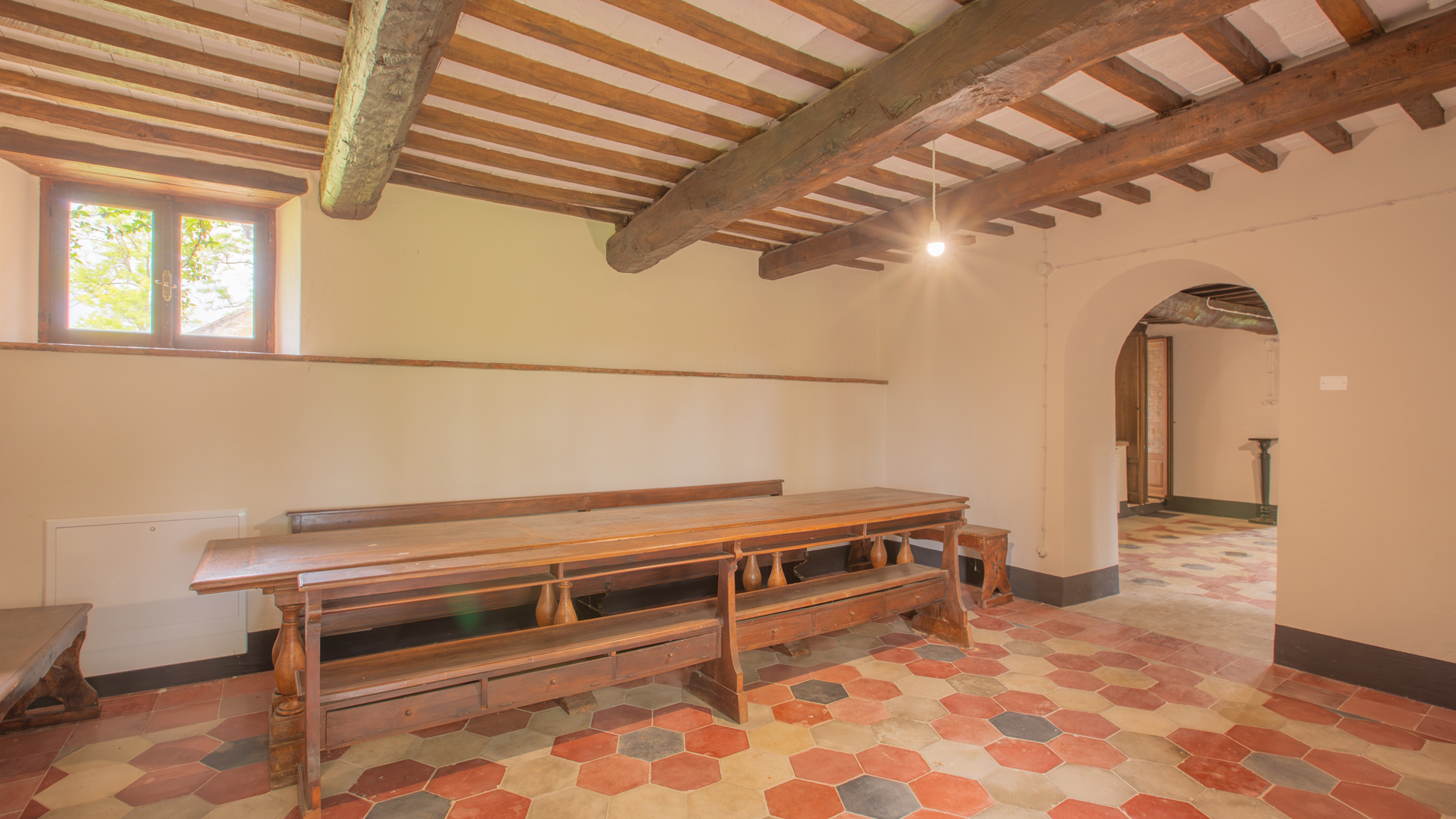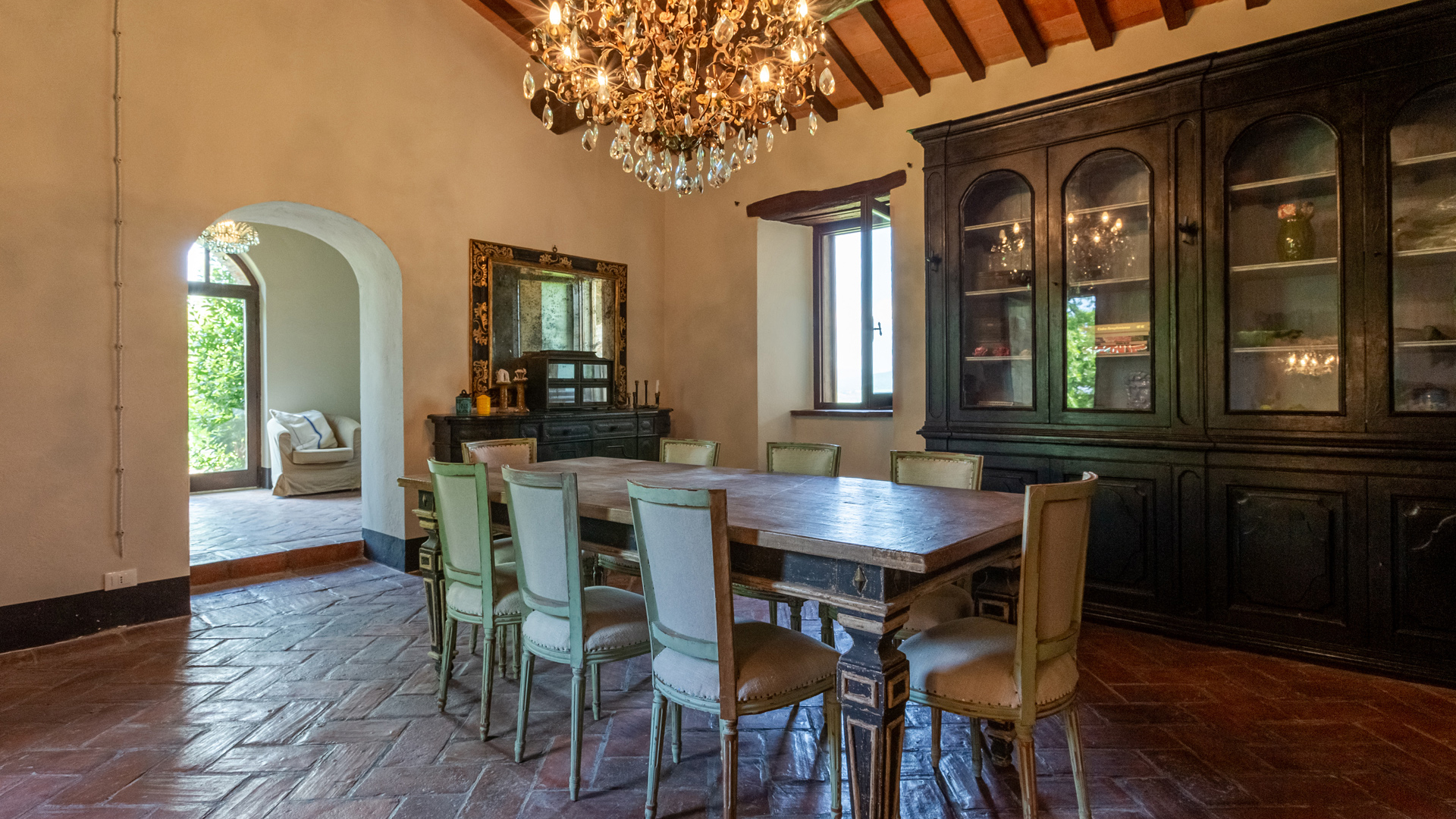 Nieruchomość położona jest na wzgórzu (480 metrów nad poziomem morza) z widokiem na piękną i nieskażoną dolinę Umbrii, bogatą w lasy i łagodne grzbiety. Zbudowana w pobliżu starożytnej etruskiej drogi, która łączyła Orvieto i Perugię z Toskanią, nieruchomość została odnowiona w dwuletnim okresie 2022-2023, zachowując autentyczność i rustykalny urok XVII-wiecznej wioski. Jest teraz podzielony na 4 komfortowe niezależne apartamenty o łącznej powierzchni około 735 m2, plus taras o powierzchni 50 m2, ganek o powierzchni 10 m2, aneks rolniczy o powierzchni 37 m2 (dawniej mały kościół), garaż o powierzchni 18 m2 i inne pomieszczenia techniczne o łącznej powierzchni około 66 m2. Główny budynek jest podzielony na 3 poziomy. Na parterze: w lewym skrzydle znajdują się 2 duże salony i pomieszczenia techniczne, natomiast w prawym skrzydle znajduje się wejście, jadalnia, duża kuchnia, sypialnia z aneksem kuchennym, łazienka i dwa inne pomieszczenia gospodarcze. Pierwsze piętro: do lewego skrzydła prowadzą zewnętrzne schody i kolejne schody z loggią – wewnątrz znajduje się duże wejście / salon, 2 sypialnie i łazienka. Do prawego skrzydła wchodzi się przez dwa wejścia: pierwsze z zewnętrznej klatki schodowej z loggią, a drugie z pięknego tarasu. Wchodząc z loggii, znajdziemy kuchnię, sypialnię i łazienkę; z innych drzwi loggii wchodzimy do innego mieszkania składającego się z 3 sypialni, dwóch łazienek, dużej jadalni, kuchni i salonu z pięknymi drzwiami, które otwierają się na taras. Na drugim piętrze, do którego prowadzą wewnętrzne schody łączące pierwsze piętro, znajdują się 3 niezależne sypialnie i 3 łazienki. Nieruchomość otoczona jest pięknym panoramicznym ogrodem o powierzchni około 9 400 m2, w którym znajduje się duży basen o wymiarach 6×17 metrów z dołączonymi przebieralniami, które można również wykorzystać do innych celów. Możliwość zakupu dodatkowych 9 hektarów ziemi.