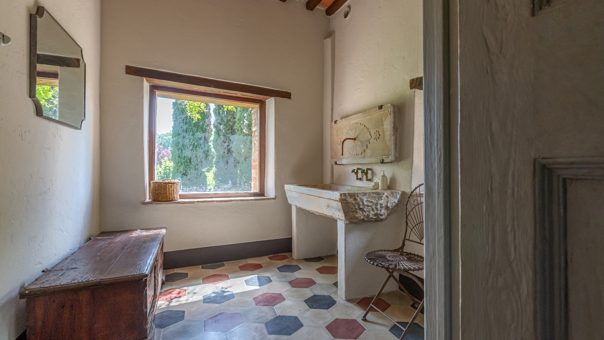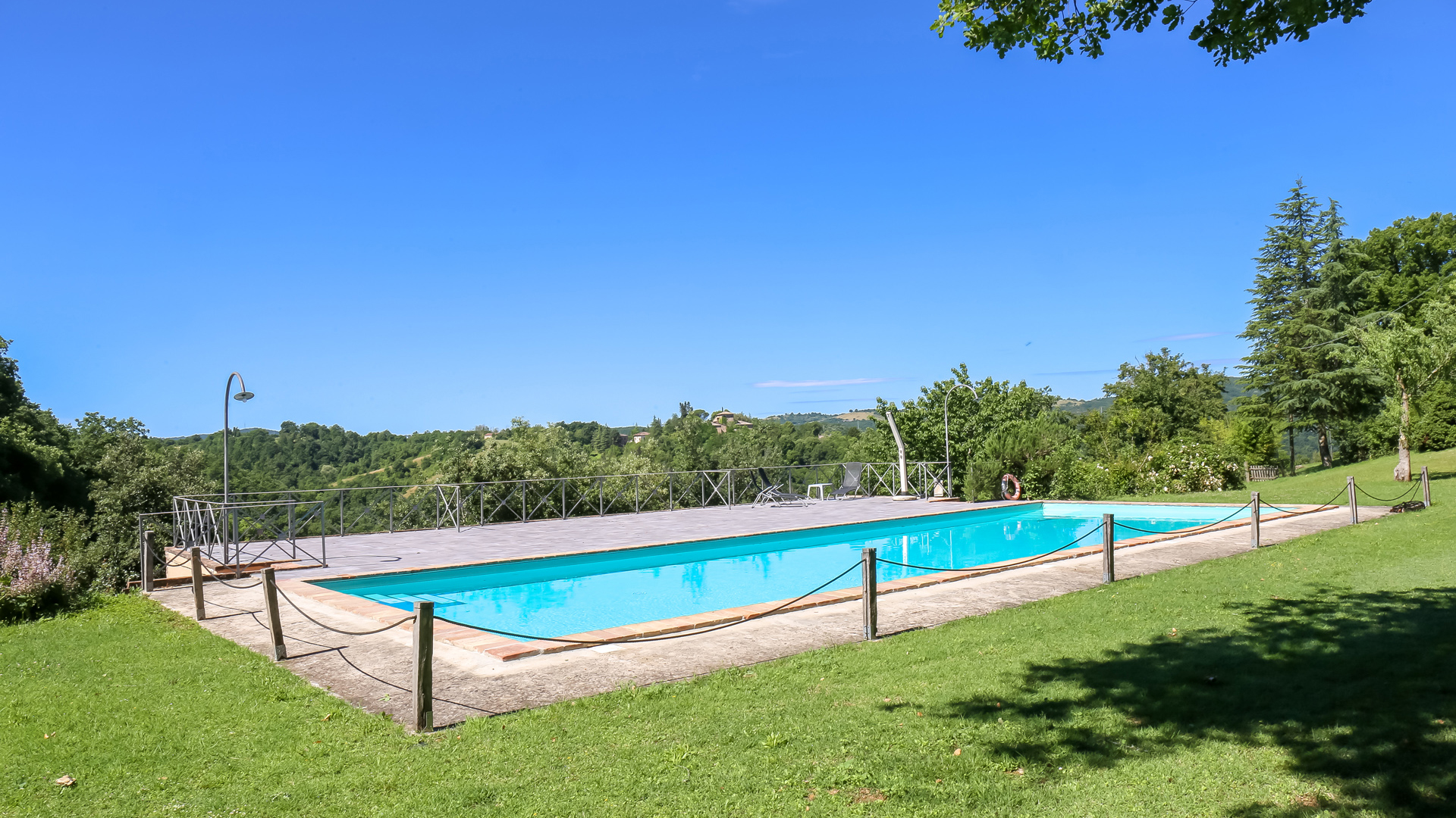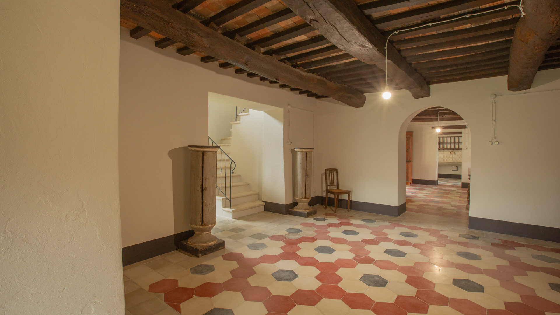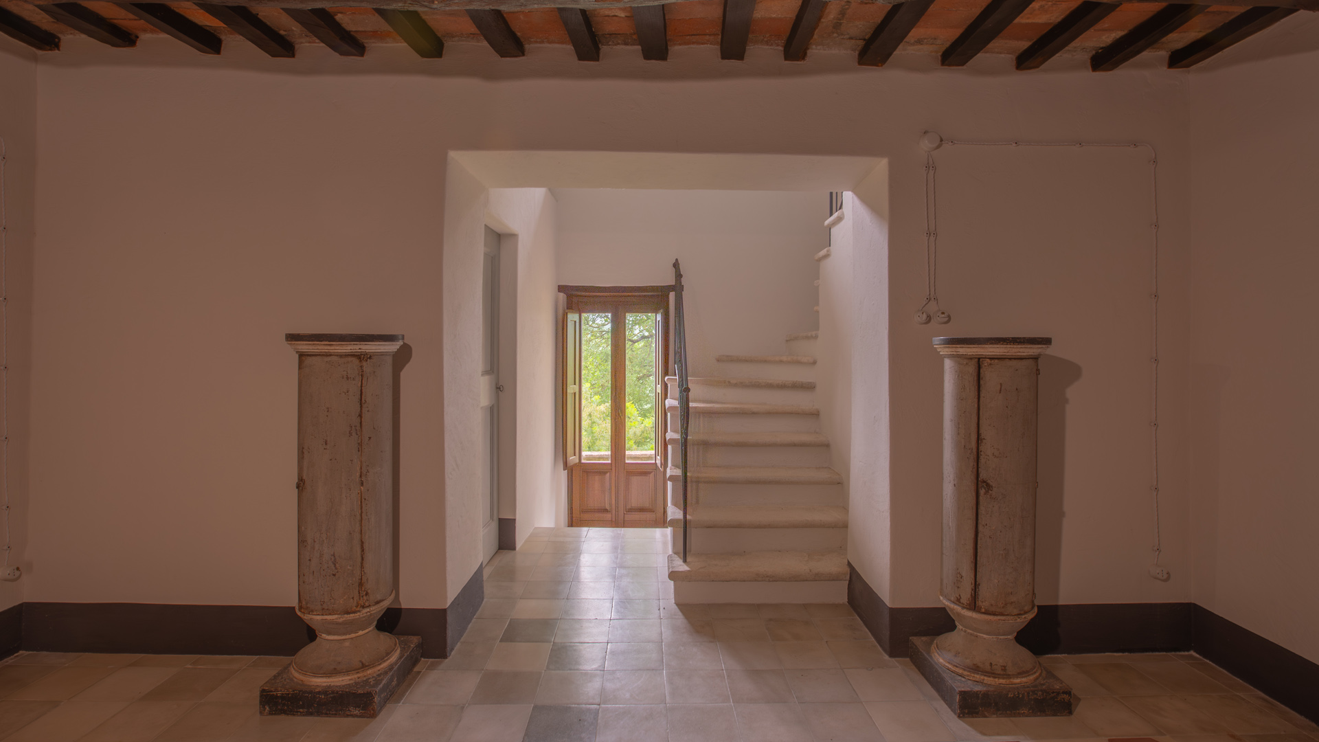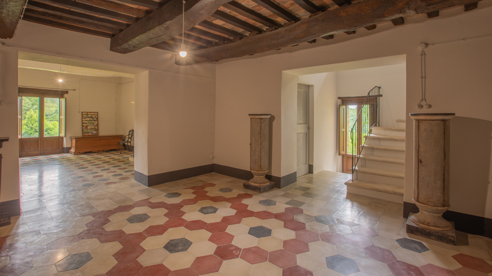 Nieruchomość położona jest na wzgórzu (480 metrów nad poziomem morza) z widokiem na piękną i nieskażoną dolinę Umbrii, bogatą w lasy i łagodne grzbiety. Zbudowana w pobliżu starożytnej etruskiej drogi, która łączyła Orvieto i Perugię z Toskanią, nieruchomość została odnowiona w dwuletnim okresie 2022-2023, zachowując autentyczność i rustykalny urok XVII-wiecznej wioski. Jest teraz podzielony na 4 komfortowe niezależne apartamenty o łącznej powierzchni około 735 m2, plus taras o powierzchni 50 m2, ganek o powierzchni 10 m2, aneks rolniczy o powierzchni 37 m2 (dawniej mały kościół), garaż o powierzchni 18 m2 i inne pomieszczenia techniczne o łącznej powierzchni około 66 m2. Główny budynek jest podzielony na 3 poziomy. Na parterze: w lewym skrzydle znajdują się 2 duże salony i pomieszczenia techniczne, natomiast w prawym skrzydle znajduje się wejście, jadalnia, duża kuchnia, sypialnia z aneksem kuchennym, łazienka i dwa inne pomieszczenia gospodarcze. Pierwsze piętro: do lewego skrzydła prowadzą zewnętrzne schody i kolejne schody z loggią – wewnątrz znajduje się duże wejście / salon, 2 sypialnie i łazienka. Do prawego skrzydła wchodzi się przez dwa wejścia: pierwsze z zewnętrznej klatki schodowej z loggią, a drugie z pięknego tarasu. Wchodząc z loggii, znajdziemy kuchnię, sypialnię i łazienkę; z innych drzwi loggii wchodzimy do innego mieszkania składającego się z 3 sypialni, dwóch łazienek, dużej jadalni, kuchni i salonu z pięknymi drzwiami, które otwierają się na taras. Na drugim piętrze, do którego prowadzą wewnętrzne schody łączące pierwsze piętro, znajdują się 3 niezależne sypialnie i 3 łazienki. Nieruchomość otoczona jest pięknym panoramicznym ogrodem o powierzchni około 9 400 m2, w którym znajduje się duży basen o wymiarach 6×17 metrów z dołączonymi przebieralniami, które można również wykorzystać do innych celów. Możliwość zakupu dodatkowych 9 hektarów ziemi.