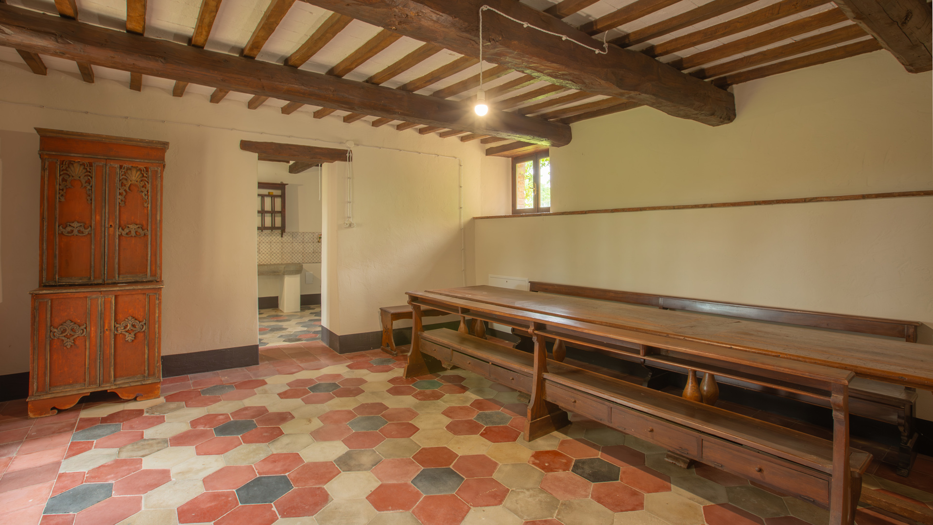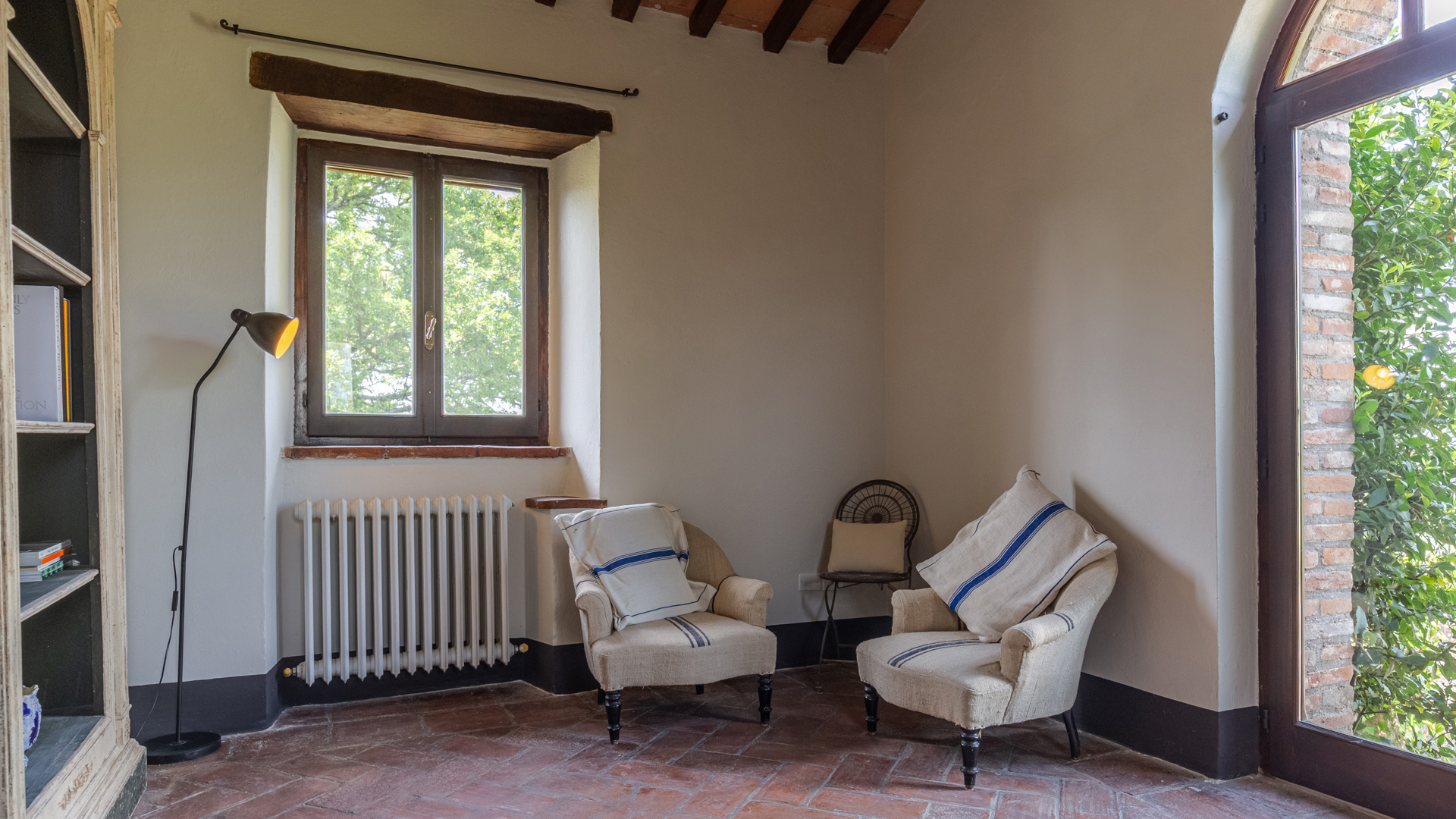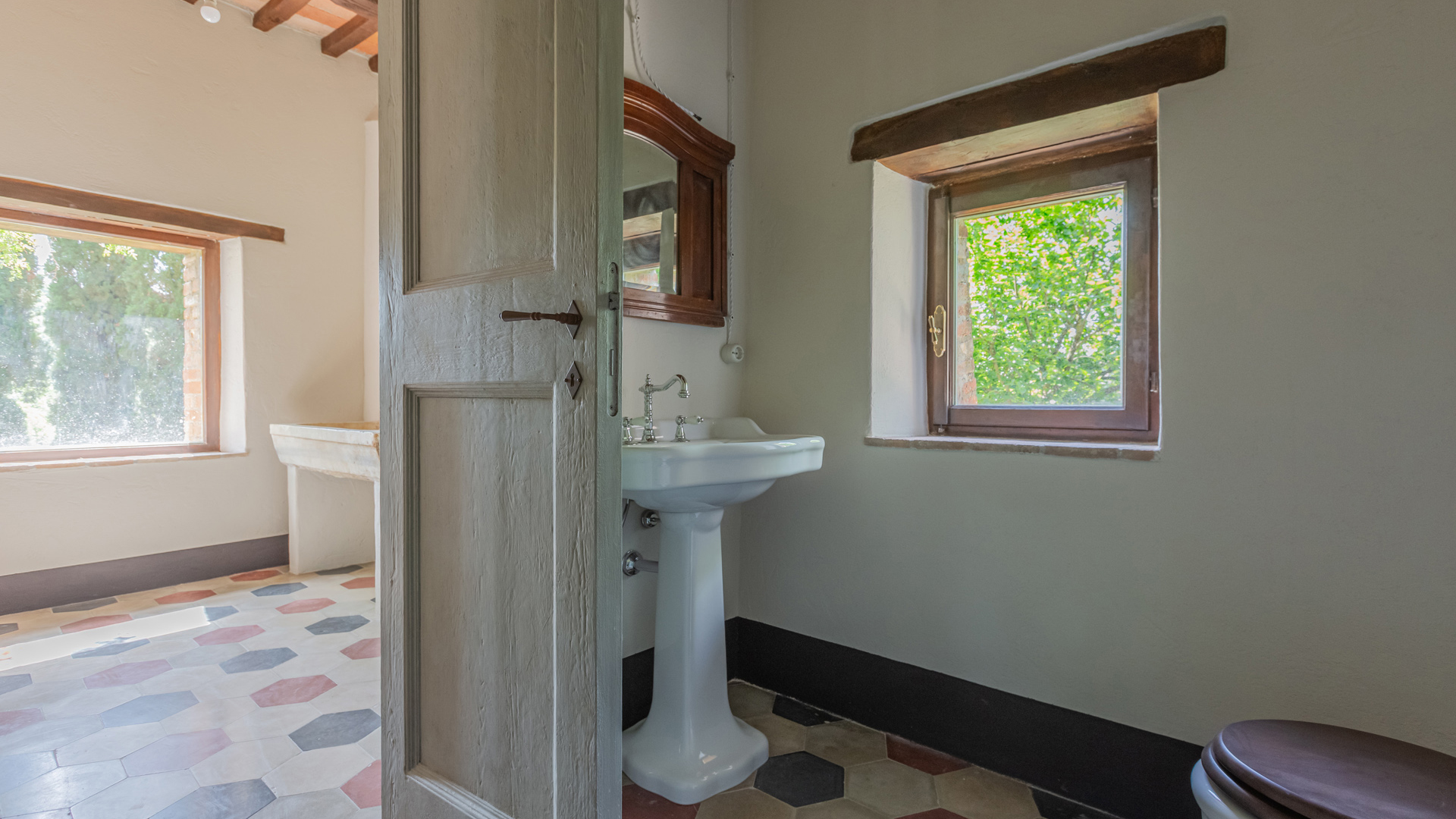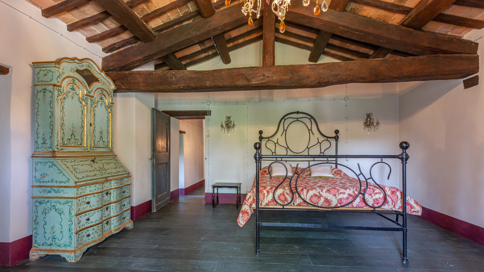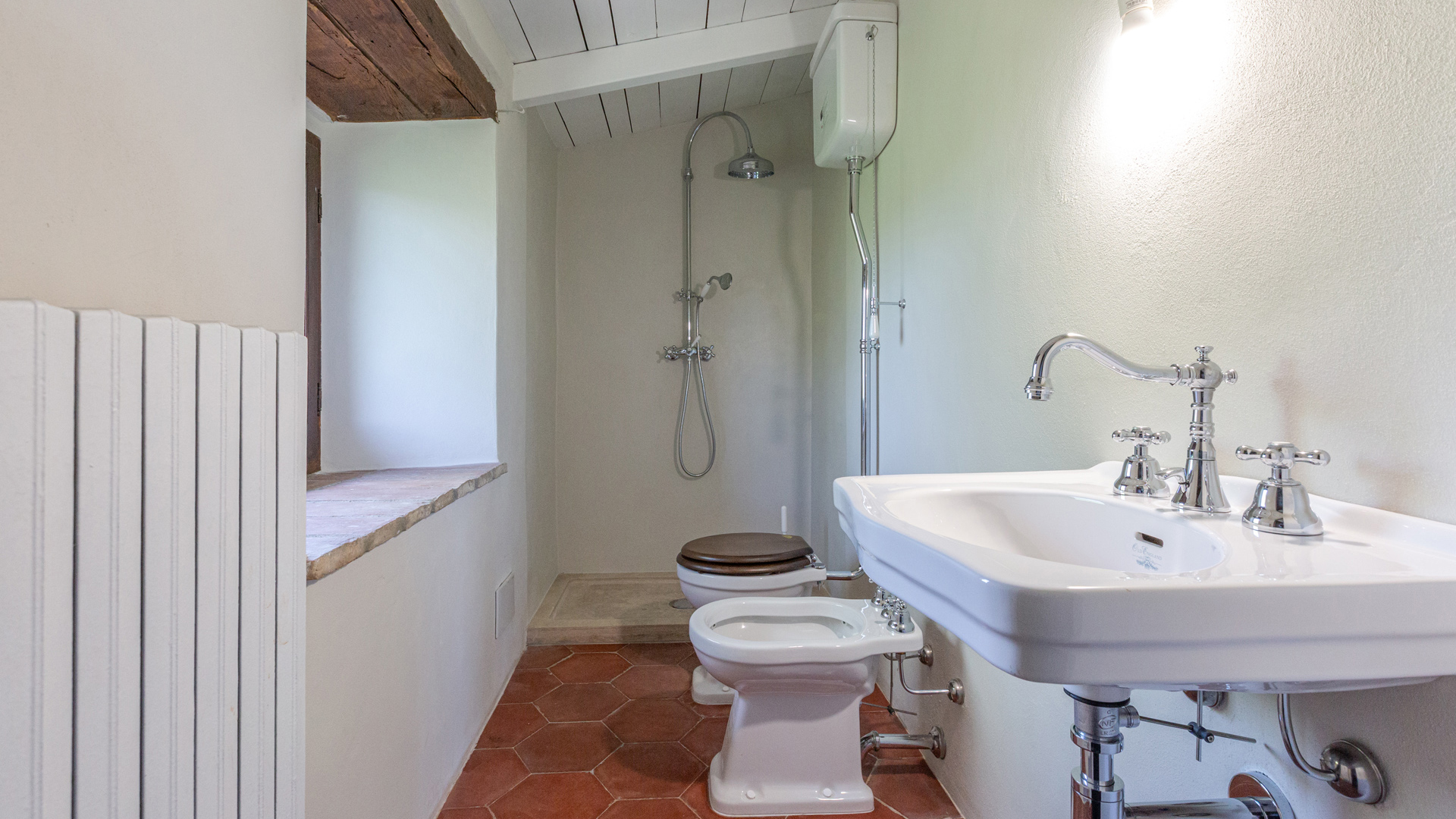 Nieruchomość położona jest na wzgórzu (480 metrów nad poziomem morza) z widokiem na piękną i nieskażoną dolinę Umbrii, bogatą w lasy i łagodne grzbiety. Zbudowana w pobliżu starożytnej etruskiej drogi, która łączyła Orvieto i Perugię z Toskanią, nieruchomość została odnowiona w dwuletnim okresie 2022-2023, zachowując autentyczność i rustykalny urok XVII-wiecznej wioski. Jest teraz podzielony na 4 komfortowe niezależne apartamenty o łącznej powierzchni około 735 m2, plus taras o powierzchni 50 m2, ganek o powierzchni 10 m2, aneks rolniczy o powierzchni 37 m2 (dawniej mały kościół), garaż o powierzchni 18 m2 i inne pomieszczenia techniczne o łącznej powierzchni około 66 m2. Główny budynek jest podzielony na 3 poziomy. Na parterze: w lewym skrzydle znajdują się 2 duże salony i pomieszczenia techniczne, natomiast w prawym skrzydle znajduje się wejście, jadalnia, duża kuchnia, sypialnia z aneksem kuchennym, łazienka i dwa inne pomieszczenia gospodarcze. Pierwsze piętro: do lewego skrzydła prowadzą zewnętrzne schody i kolejne schody z loggią – wewnątrz znajduje się duże wejście / salon, 2 sypialnie i łazienka. Do prawego skrzydła wchodzi się przez dwa wejścia: pierwsze z zewnętrznej klatki schodowej z loggią, a drugie z pięknego tarasu. Wchodząc z loggii, znajdziemy kuchnię, sypialnię i łazienkę; z innych drzwi loggii wchodzimy do innego mieszkania składającego się z 3 sypialni, dwóch łazienek, dużej jadalni, kuchni i salonu z pięknymi drzwiami, które otwierają się na taras. Na drugim piętrze, do którego prowadzą wewnętrzne schody łączące pierwsze piętro, znajdują się 3 niezależne sypialnie i 3 łazienki. Nieruchomość otoczona jest pięknym panoramicznym ogrodem o powierzchni około 9 400 m2, w którym znajduje się duży basen o wymiarach 6×17 metrów z dołączonymi przebieralniami, które można również wykorzystać do innych celów. Możliwość zakupu dodatkowych 9 hektarów ziemi.