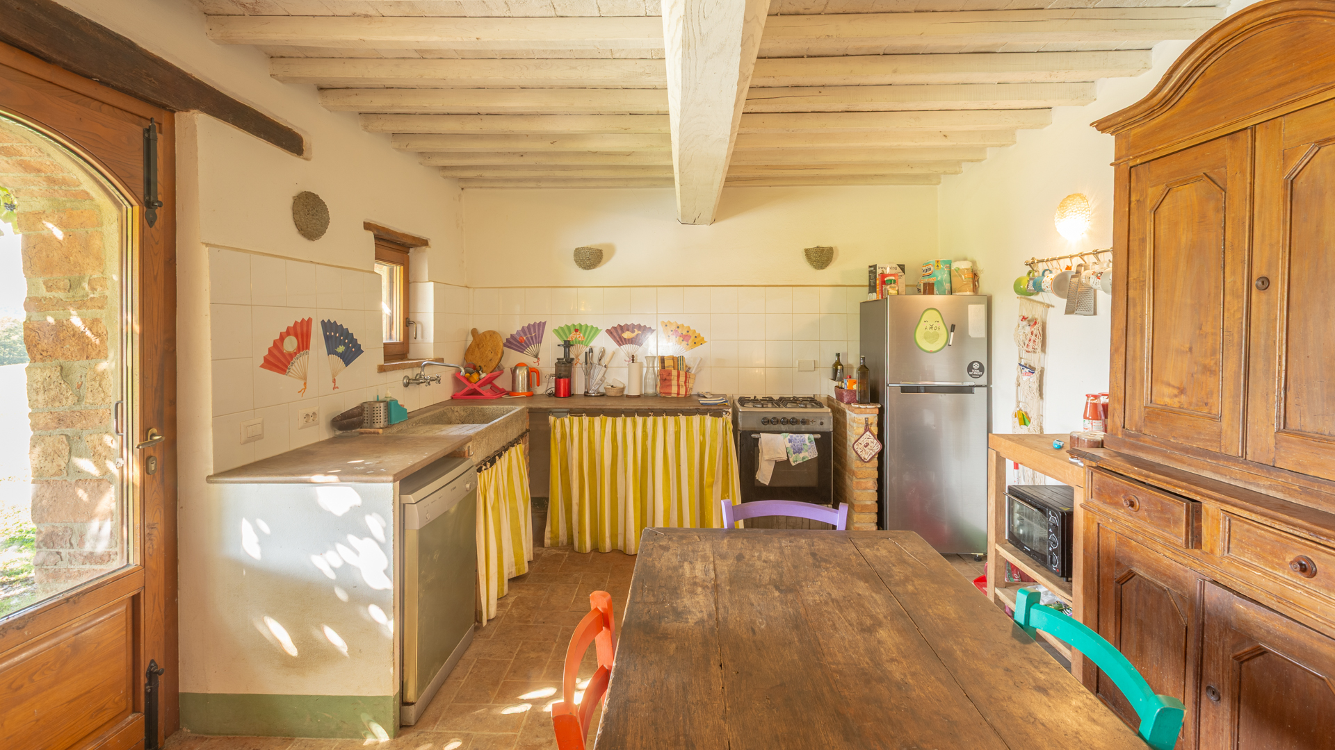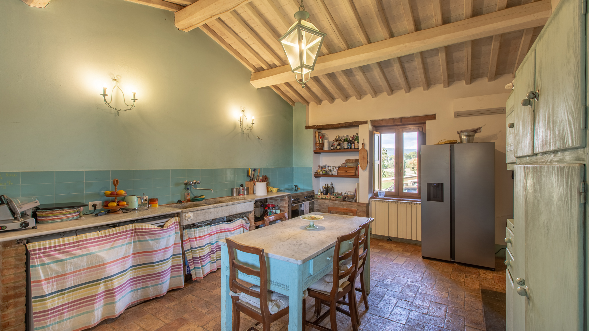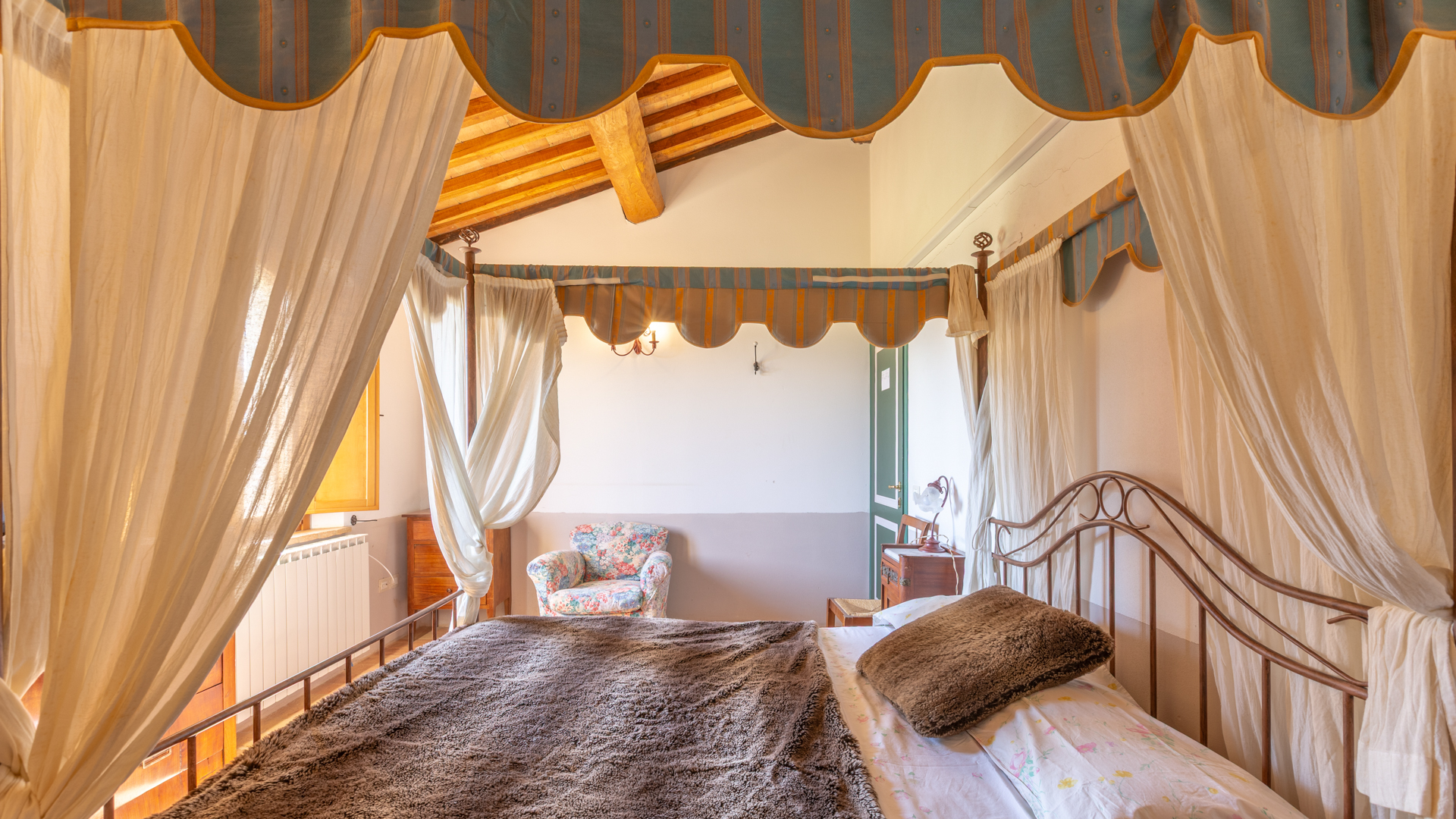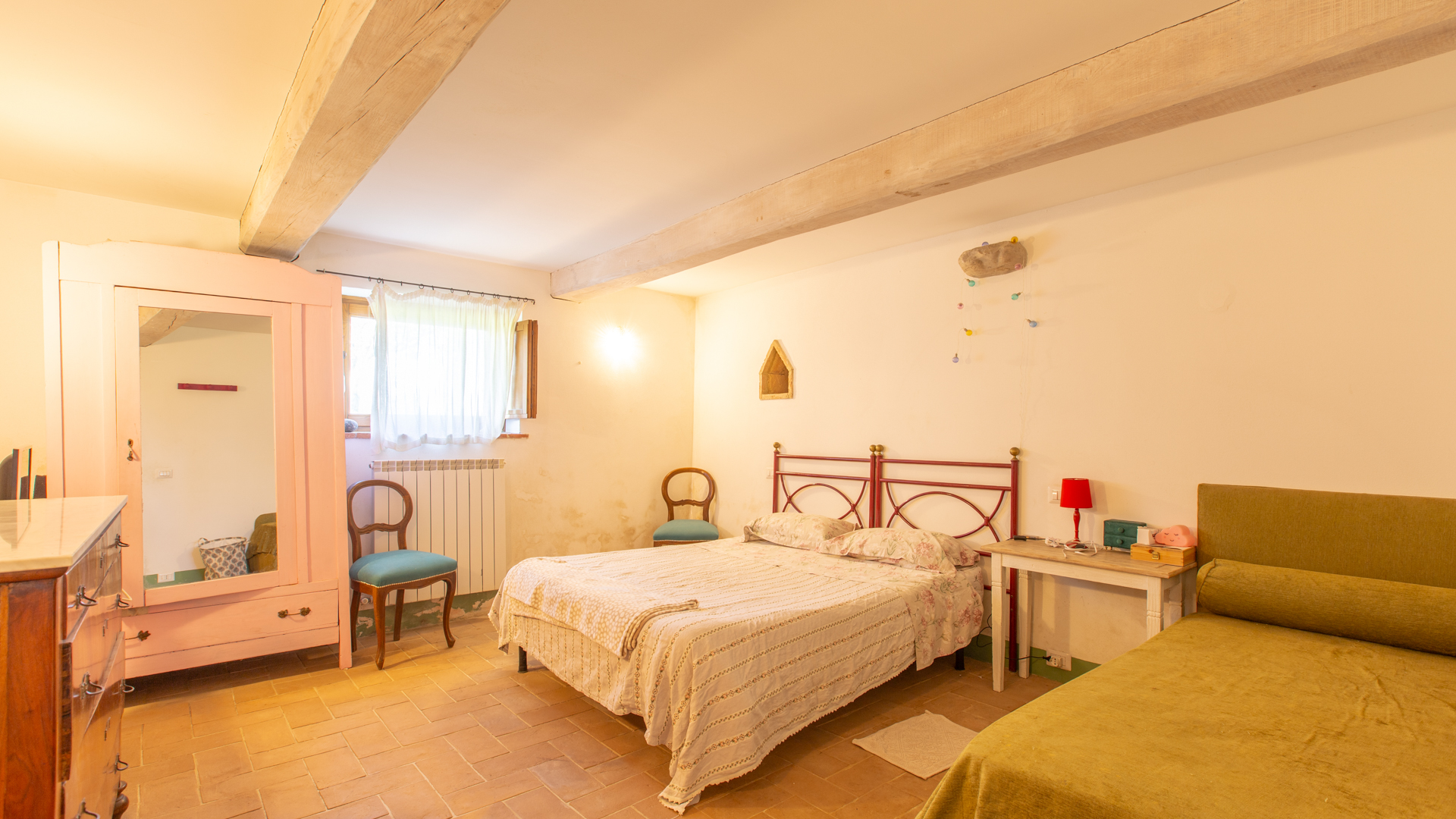 Podere Salceto to typowy kamienny dom wiejski, w pełni odrestaurowany na początku 2000 roku. Oferuje on powierzchnię brutto 510 m2, rozłożoną na dwóch poziomach, starannie zaaranżowaną w następujący sposób: na parterze znajduje się część wykorzystywana jako magazyn, inny obszar, w którym zainstalowano łazienkę, kuchnię i dużą salę bilardową. Pokoje te wychodzą na przestronną pergolę, idealną na letnie wieczorne posiłki. Również na parterze, z niezależnym dostępem, znajduje się apartament składający się z kuchni, salonu, łazienki i sypialni. Ten apartament ma własną przestrzeń na zewnątrz, gdzie stworzono letnią część wypoczynkową. Wchodząc po zabytkowych kamiennych i ceglanych schodach, można dotrzeć do loggii z funkcjonalnym starym piecem opalanym drewnem i jadalnią na świeżym powietrzu. Na tym piętrze znajdują się cztery sypialnie, trzy łazienki, duża rustykalna kuchnia i salon z zabytkowym kominkiem. Na zewnątrz znajduje się duża fontanna (o wymiarach 9 x 2,5 m i wysokości 2 m), w której można się orzeźwić w gorące letnie dni. Posiadłość rozciąga się na około 51 hektarach, podzielonych na około 1,2 hektara zalesionych pastwisk, około 23 hektary zagajników i lasów mieszanych, około 26 hektarów gruntów ornych, około 0,5 hektara sadów i około 2,05 hektara gajów oliwnych klasy A. Dodatkowo, dwa lata temu zbudowano tunel rolniczy o powierzchni 250 m2 do przechowywania maszyn.