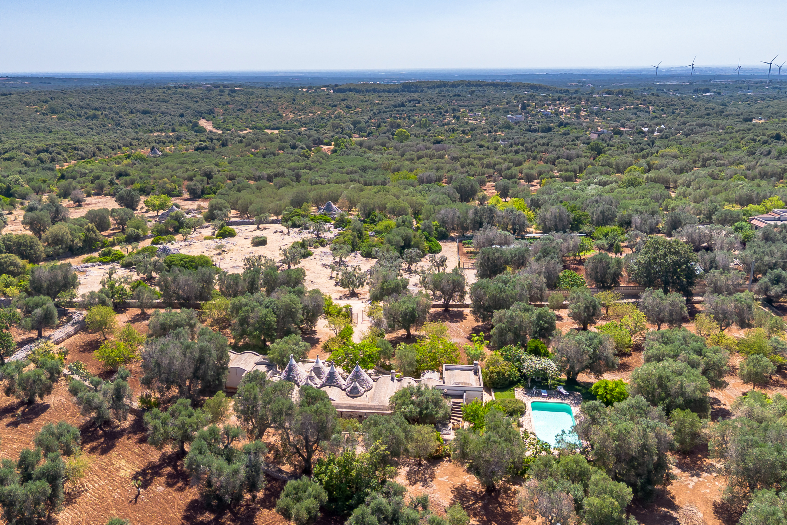 Położona w samym sercu uroczej doliny Valle d’Itria, w otoczeniu stuletnich drzew oliwnych i spokoju apulijskiej wsi, ta urocza posiadłość składa się z grupy pięknie odrestaurowanych trulli, prywatnego basenu, niezależnego pensjonatu i dużej działki z studnią artezyjską.