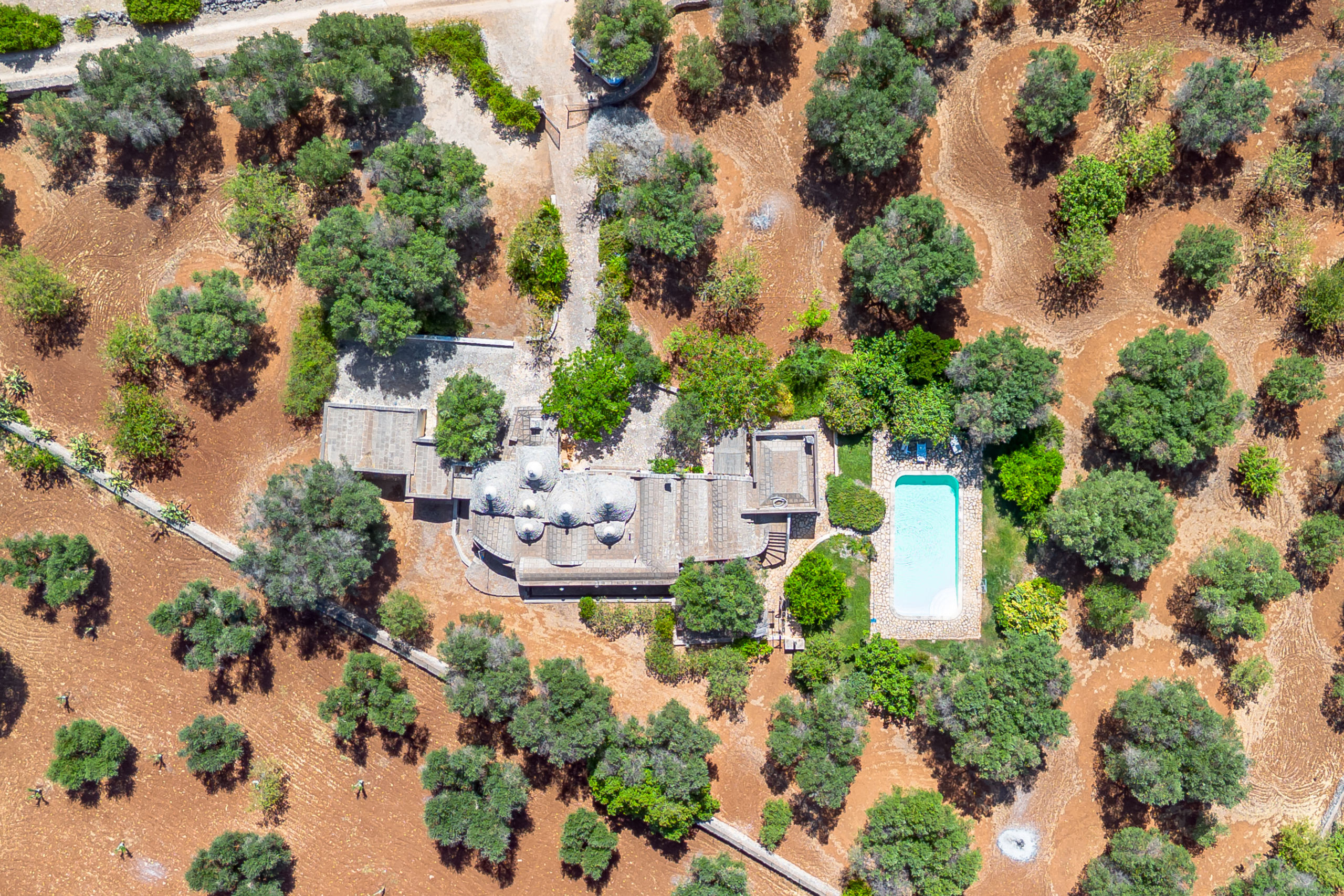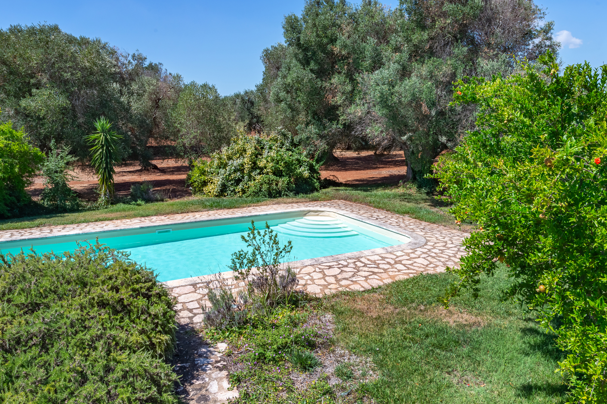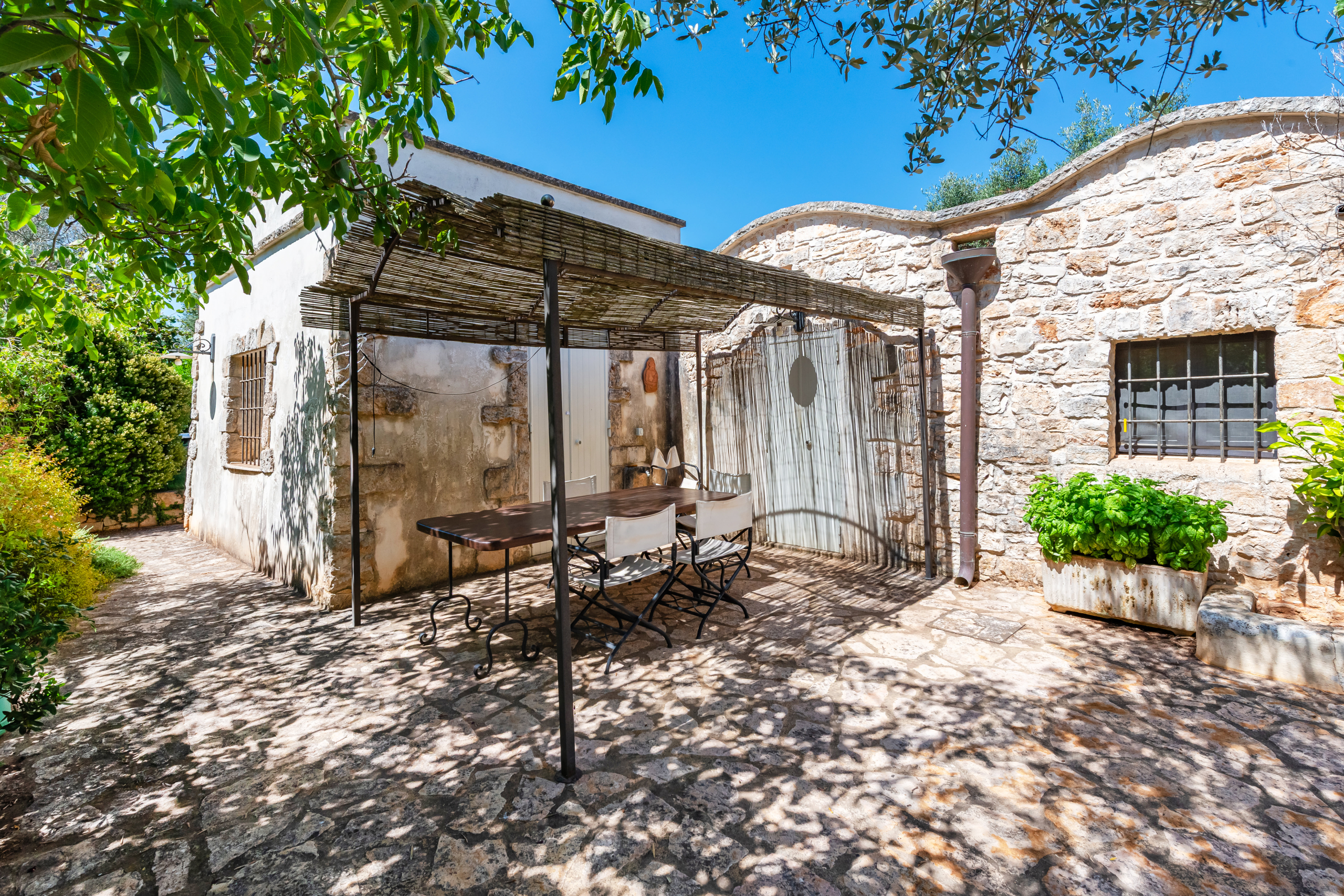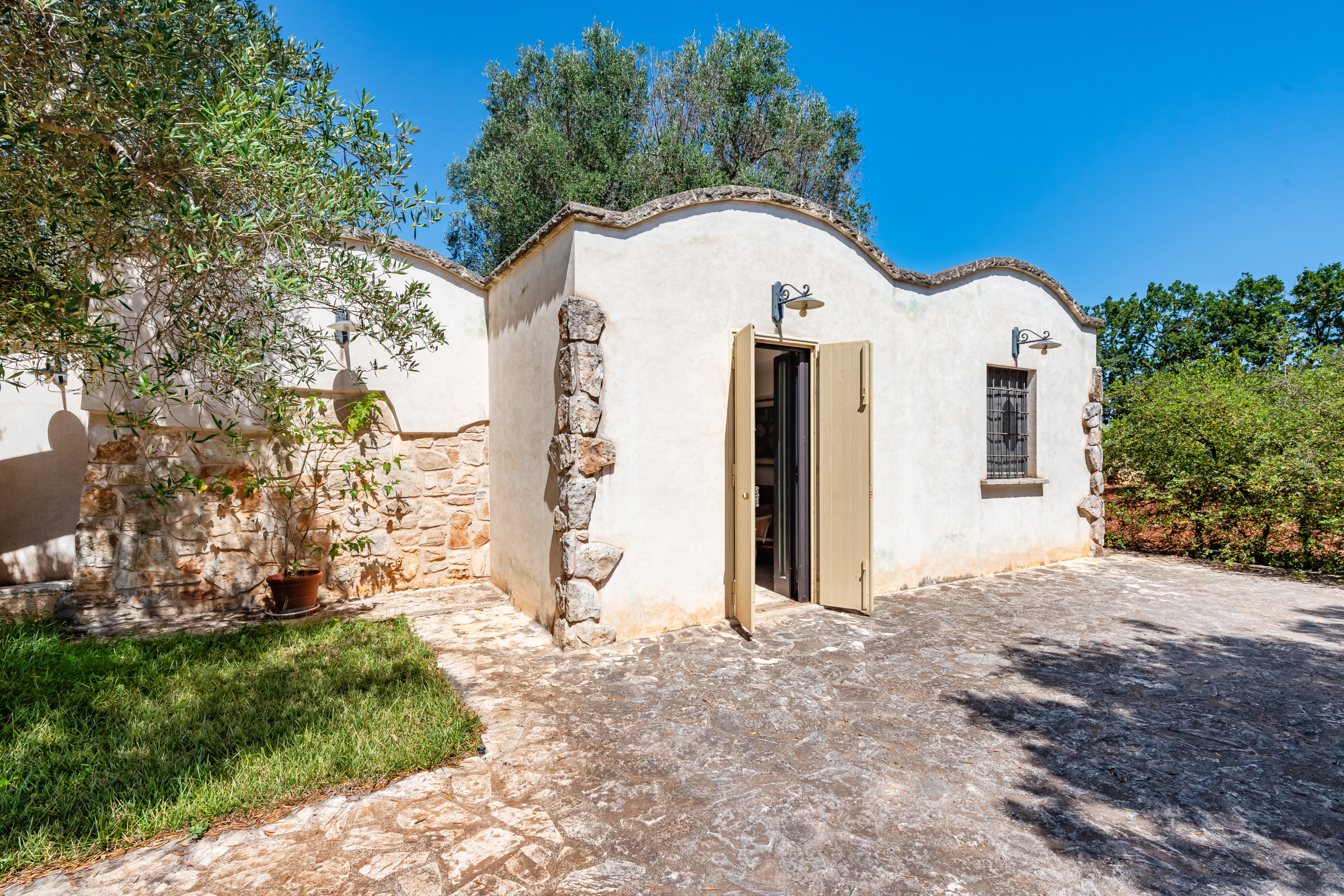 Dom otoczony jest dużym, zadbanym ogrodem, wzbogaconym drzewami owocowymi i gajami oliwnymi, i rozciąga się na prywatnej działce z zaopatrzeniem w wodę z czynnej studni artezyjskiej. Otoczenie zapewnia poczucie spokoju i harmonii, pozostając jednocześnie blisko niektórych z najbardziej urokliwych miast regionu, takich jak Cisternino, Ostuni, Martina Franca i Locorotondo.