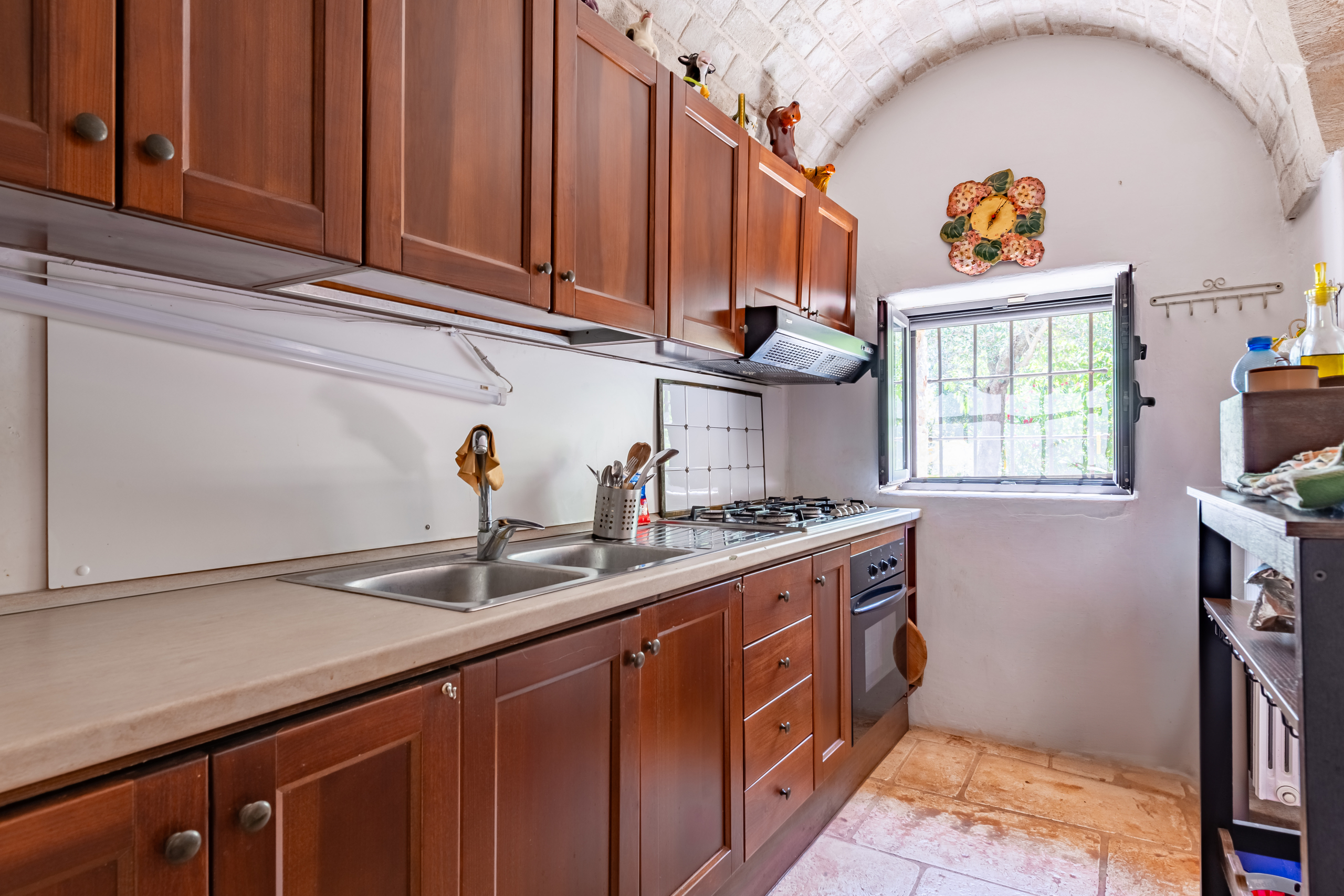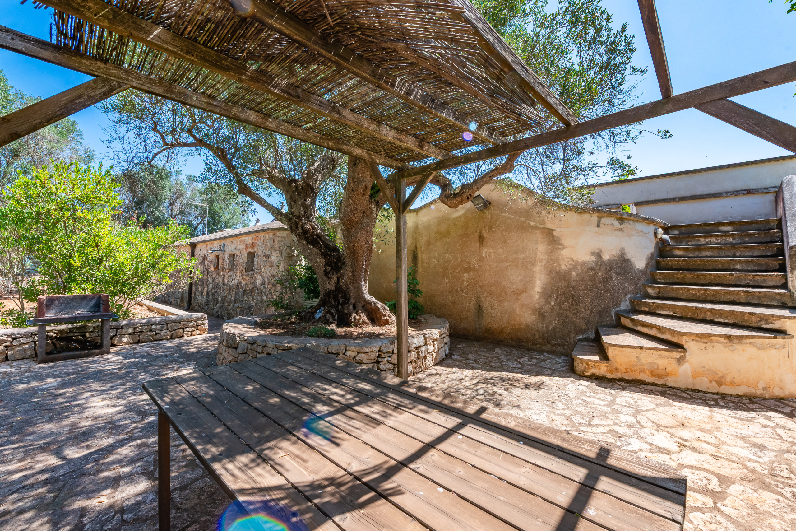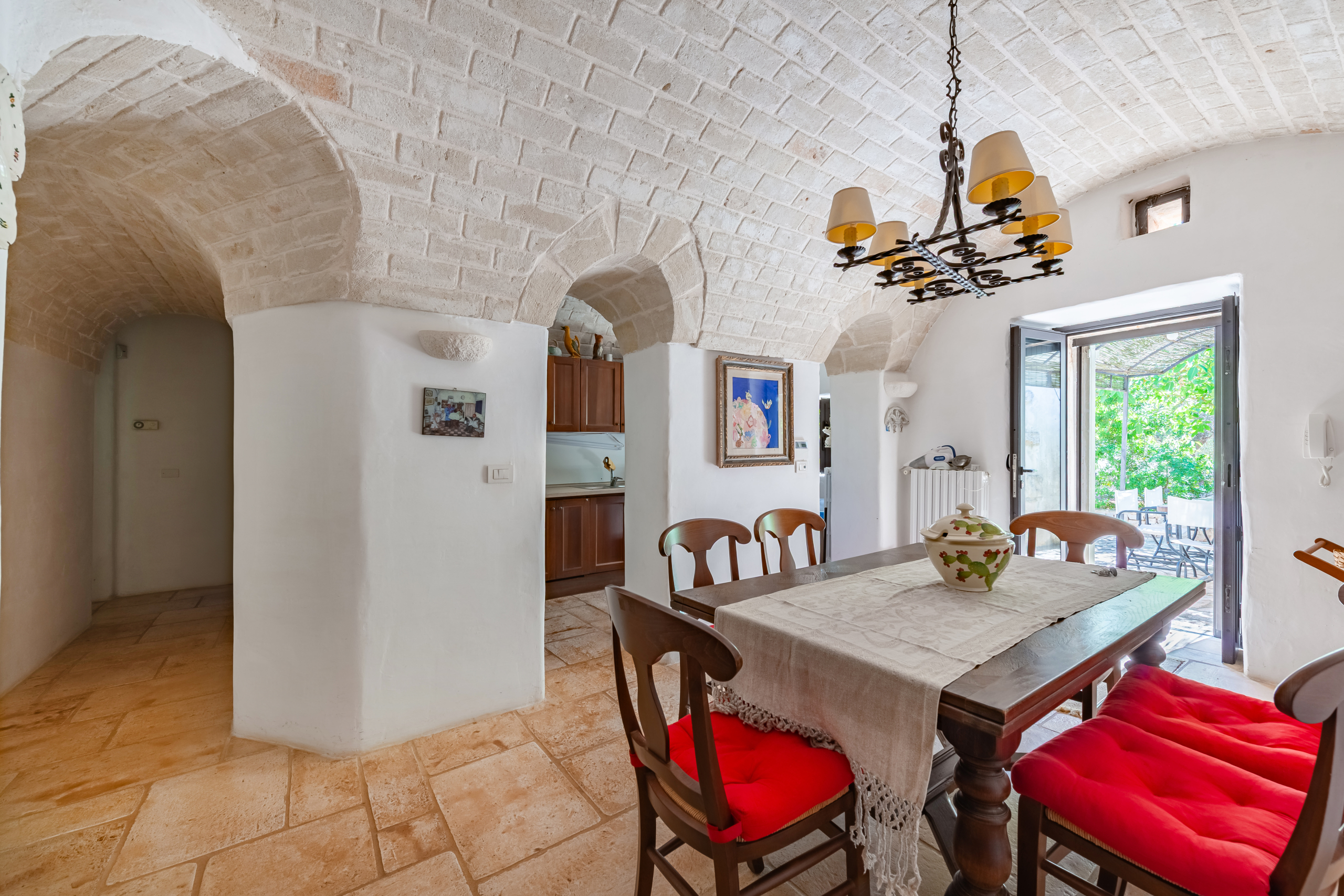 Główna rezydencja została starannie odrestaurowana, aby zachować autentyczny urok oryginalnych trulli, oferując przytulne wnętrza wzbogacone oryginalnymi podłogami z kamienia chianche i detalami z naturalnego kamienia. Na zewnątrz prywatny basen harmonijnie komponuje się z naturalnym otoczeniem. Jest on bardzo przestronny i wyposażony w wyłożone kamieniem solarium – idealne miejsce na relaks w ciepłe, słoneczne dni. W pobliżu znajduje się tradycyjny piec opalany drewnem, który zachęca do spożywania posiłków na świeżym powietrzu w prawdziwym stylu apulijskim.