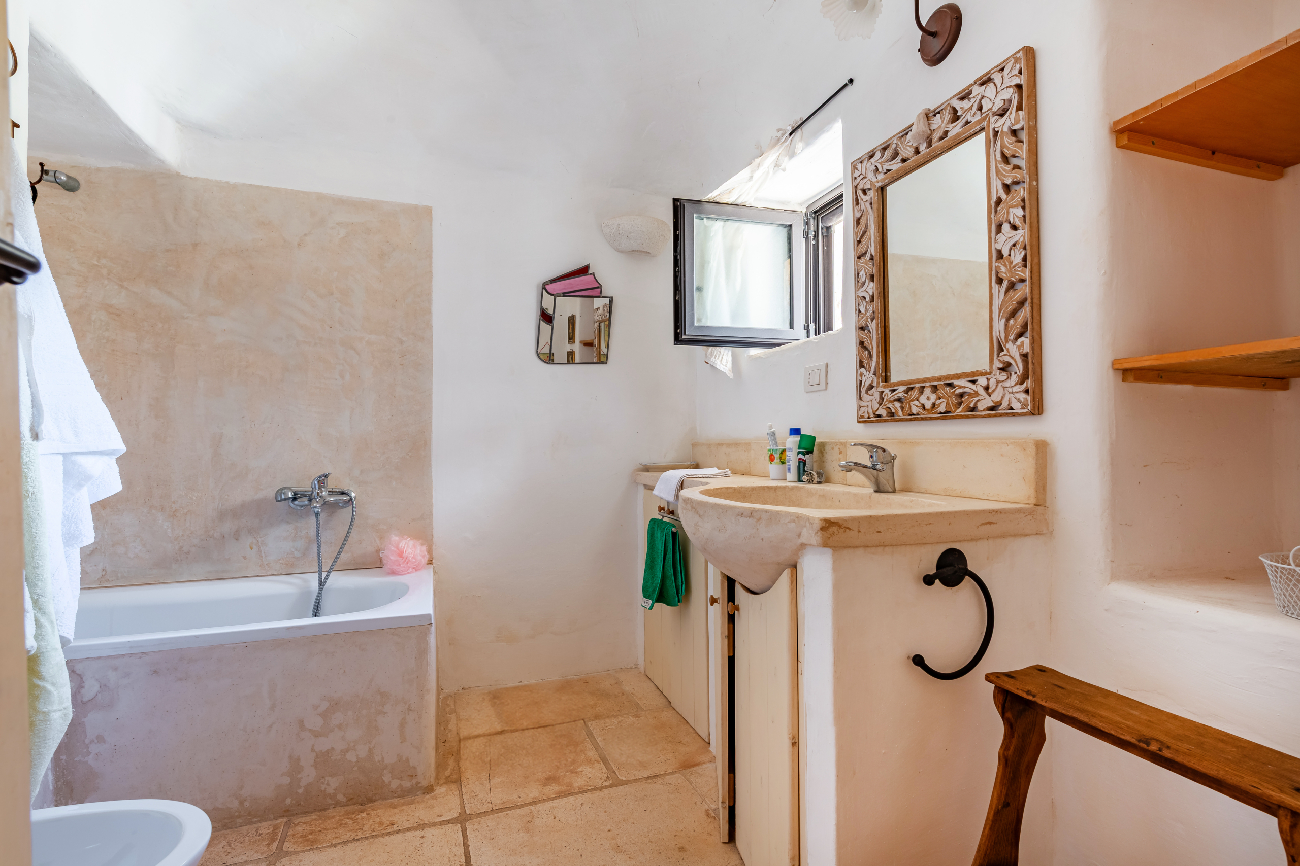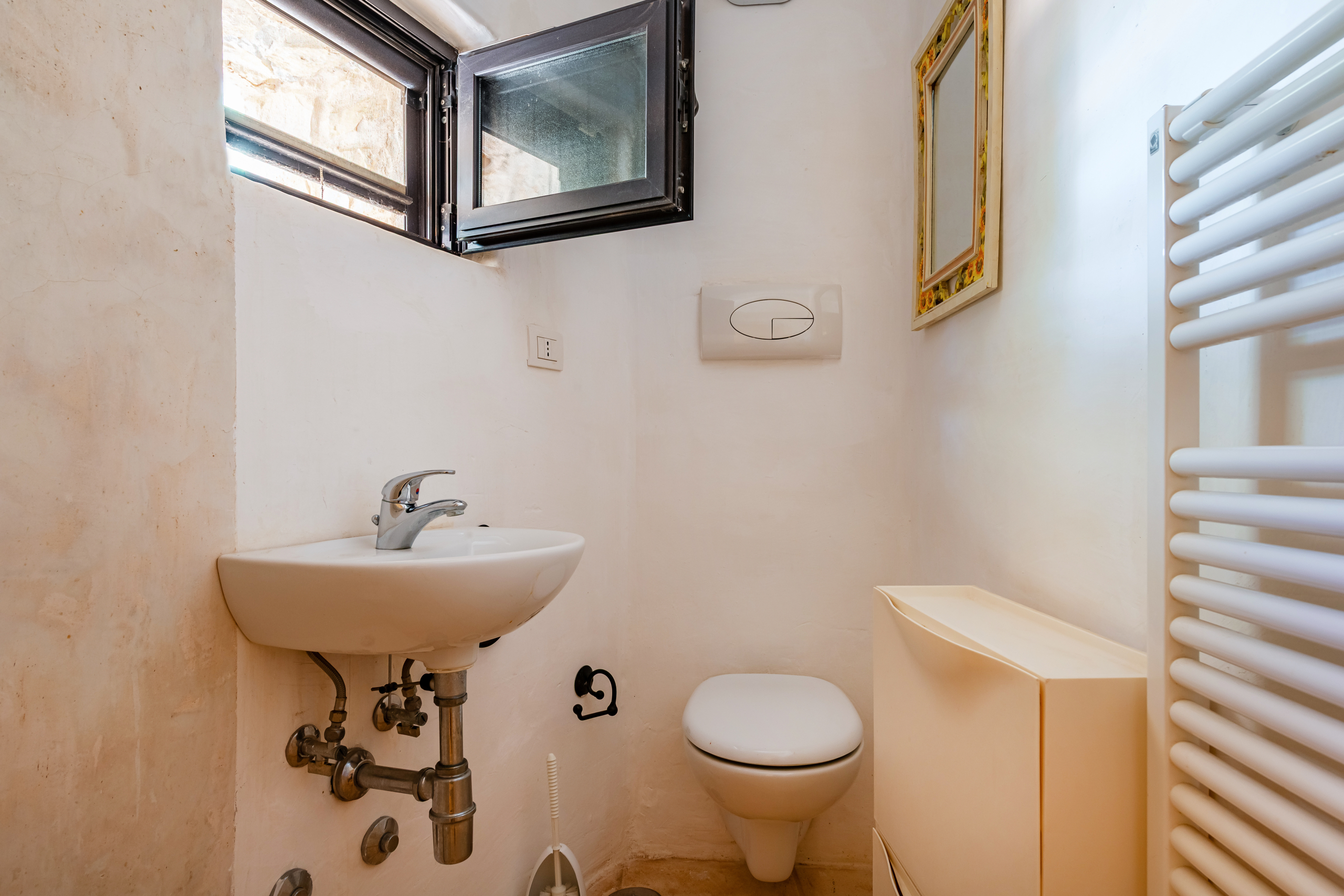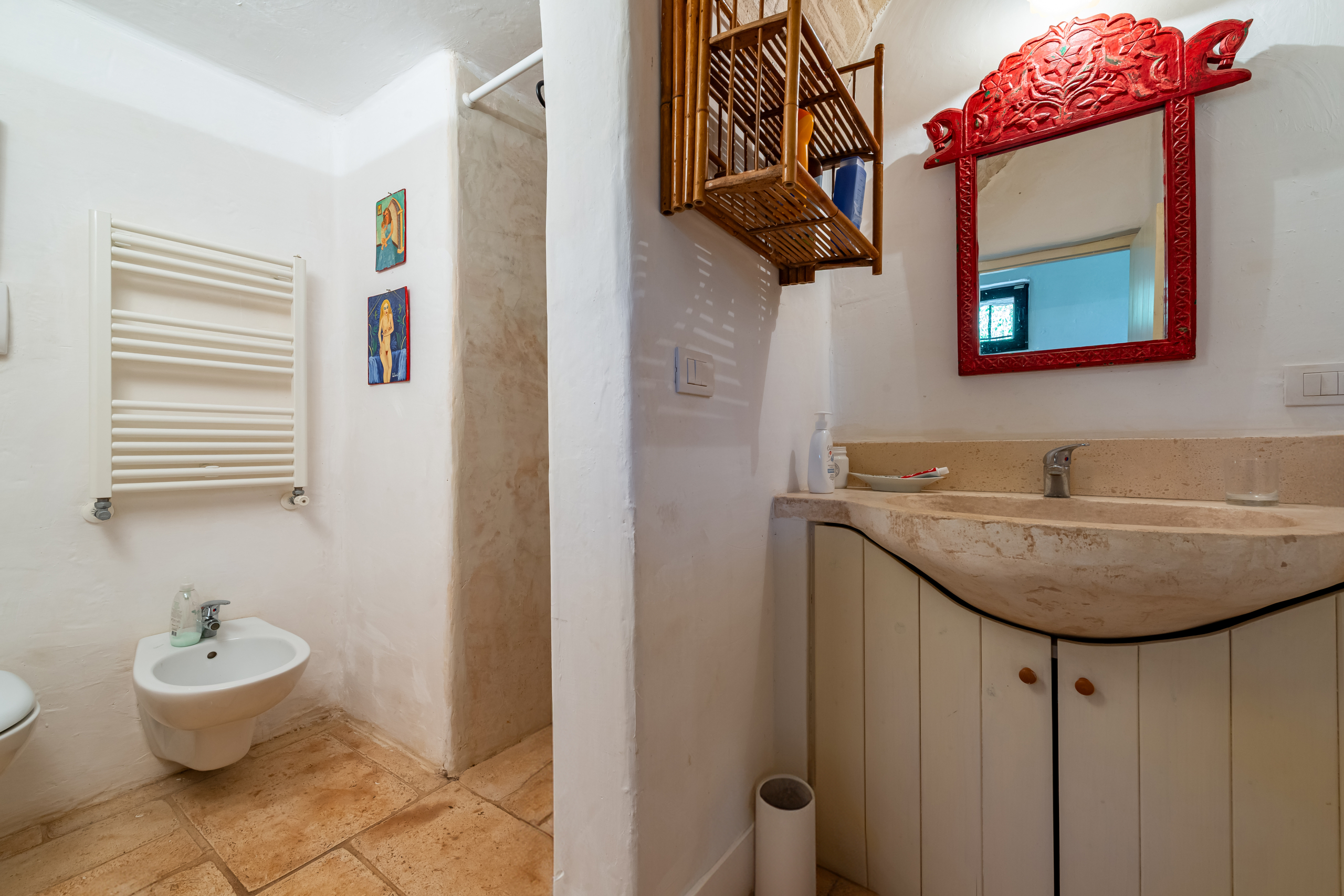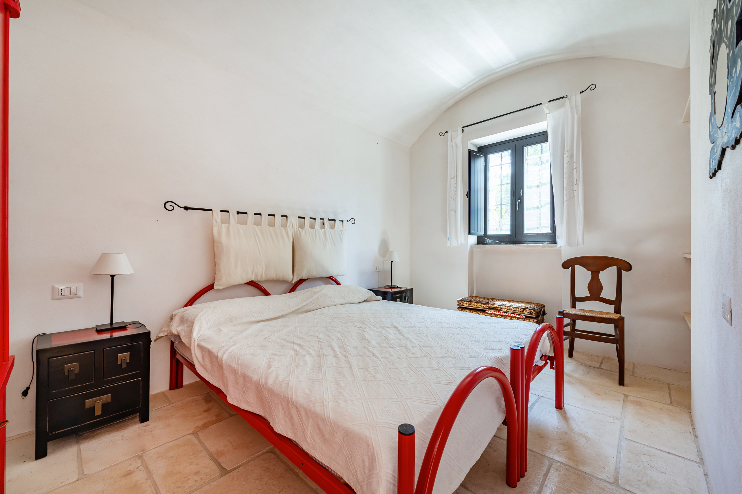 Główna rezydencja została starannie odrestaurowana, aby zachować autentyczny urok oryginalnych trulli, oferując przytulne wnętrza wzbogacone oryginalnymi podłogami z kamienia chianche i detalami z naturalnego kamienia. Na zewnątrz prywatny basen harmonijnie komponuje się z naturalnym otoczeniem. Jest on bardzo przestronny i wyposażony w wyłożone kamieniem solarium – idealne miejsce na relaks w ciepłe, słoneczne dni. W pobliżu znajduje się tradycyjny piec opalany drewnem, który zachęca do spożywania posiłków na świeżym powietrzu w prawdziwym stylu apulijskim.