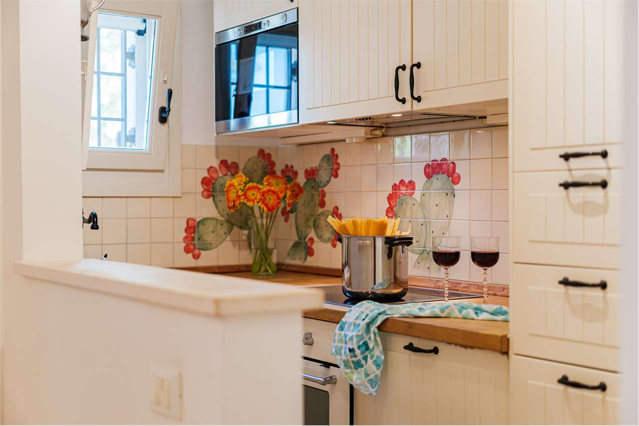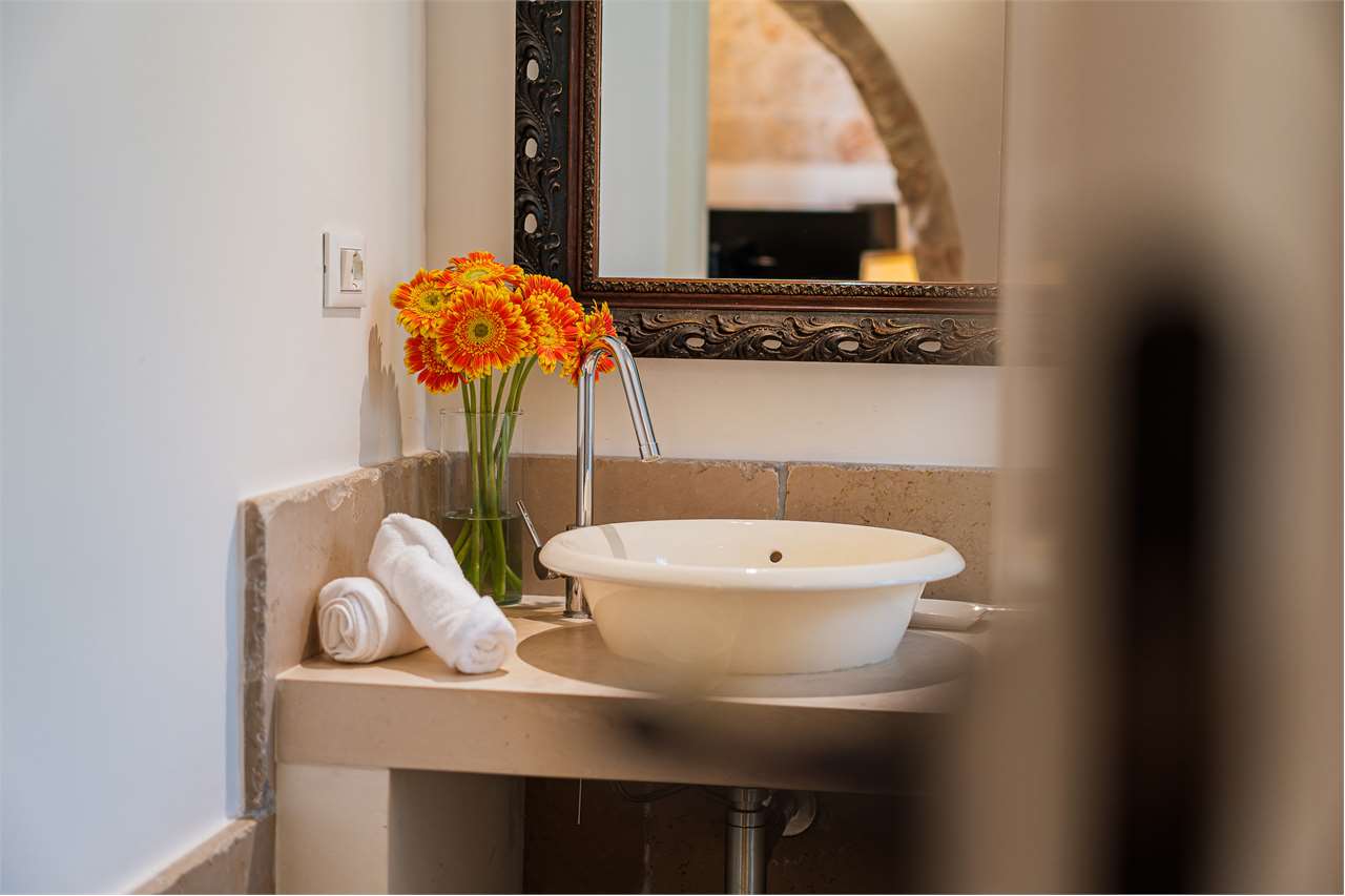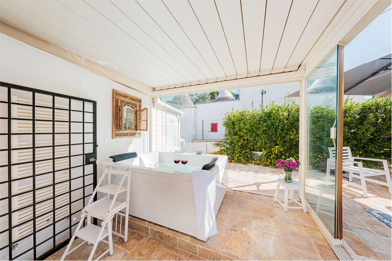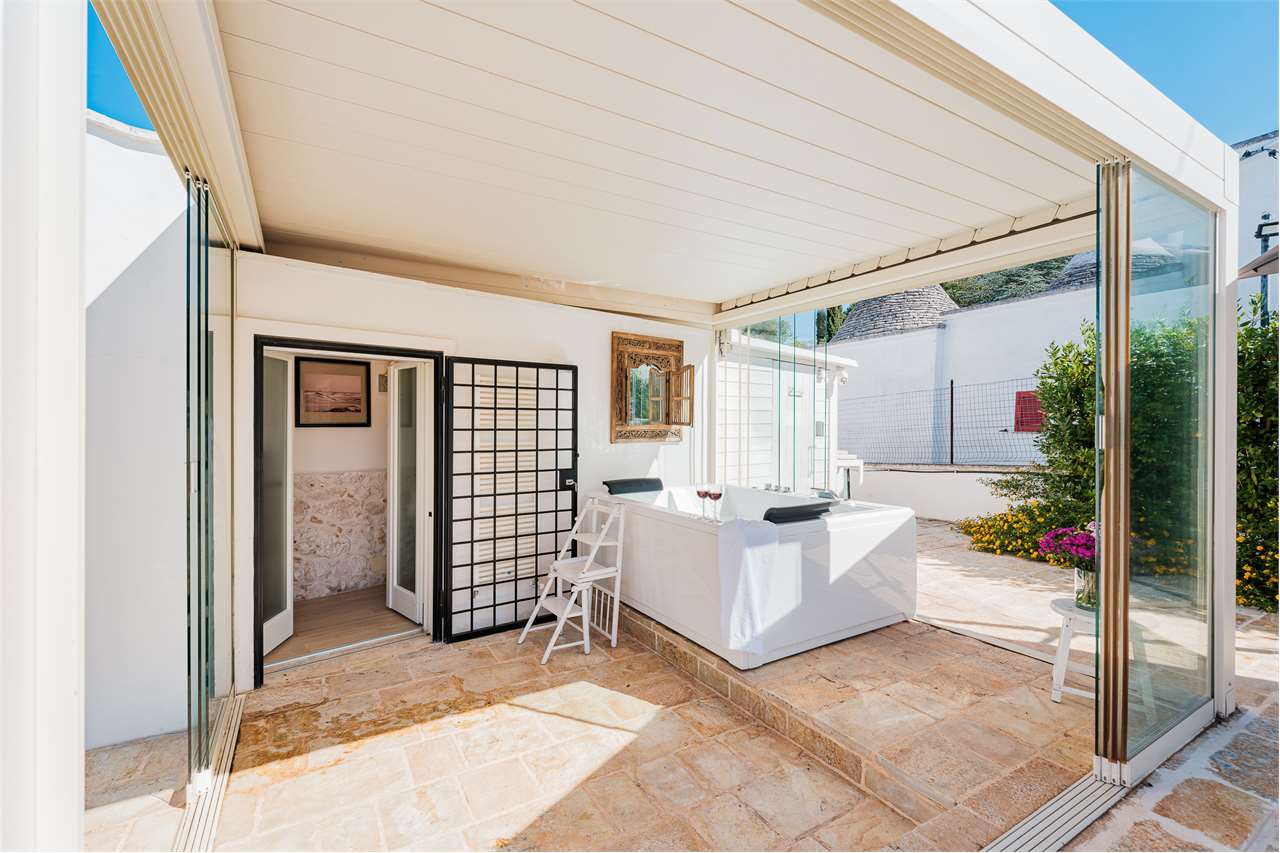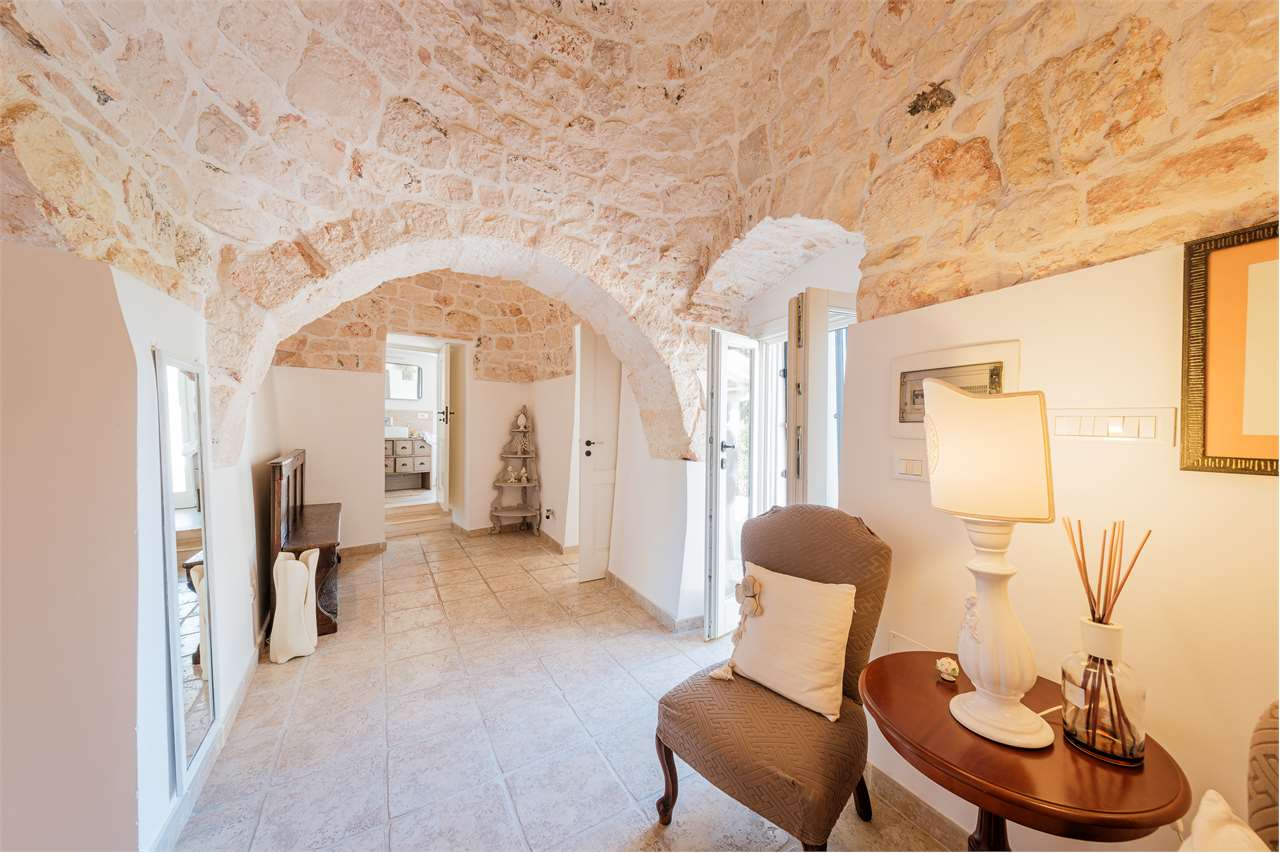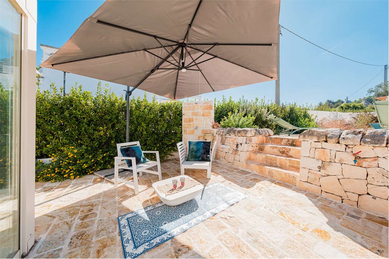 Ta wyjątkowa nieruchomość składa się z labiryntu 5 stożkowych trulli i lamii, połączonych schodami, które oddzielają część dzienną od sypialnej, tworząc mistyczną, ale ciepłą i przyjazną atmosferę. Wnętrze zachowało swój rustykalny urok dzięki sklepionym sufitom i odsłoniętym kamiennym ścianom – to naprawdę jedyne w swoim rodzaju doświadczenie!