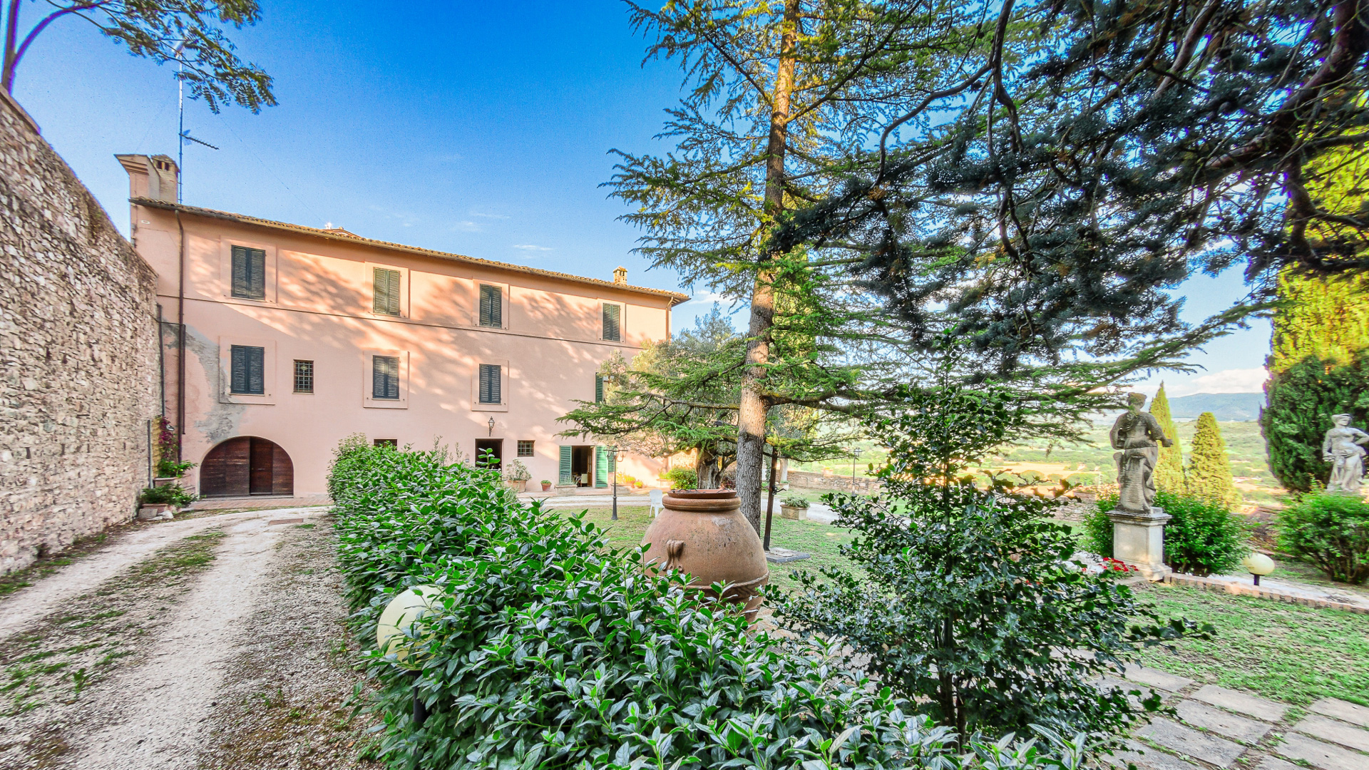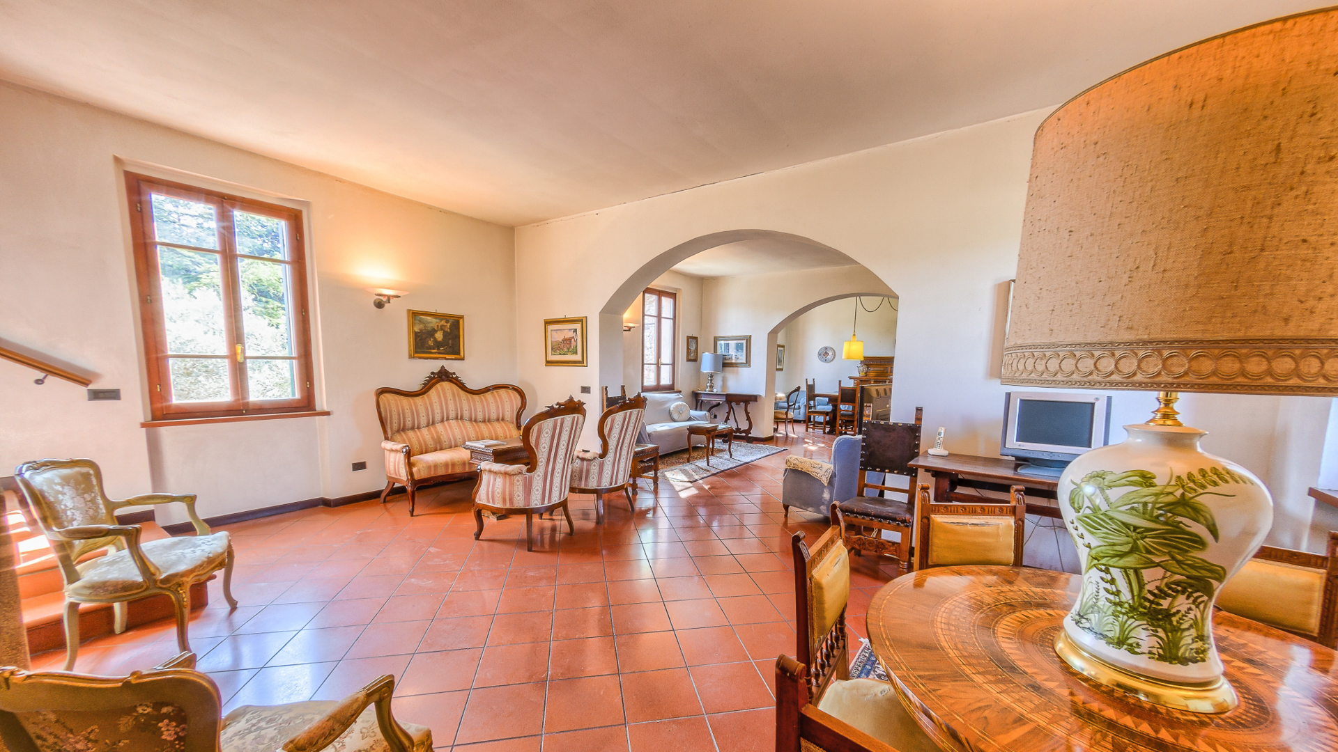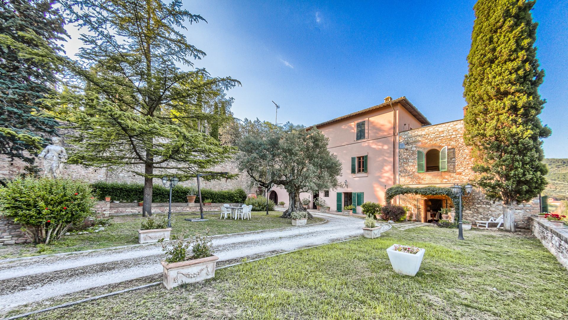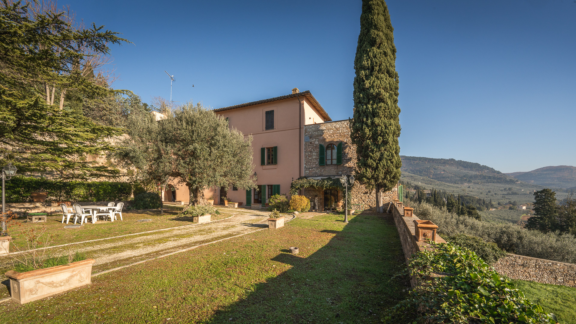 Ta oszałamiająca nieruchomość rozciąga się na powierzchni mieszkalnej brutto około 460 m2, rozłożonej na trzech poziomach, oferując przestronne, jasne pokoje doskonale zaaranżowane, aby zapewnić komfort i funkcjonalność. Na parterze podwójne wejście prowadzi do uroczego rustykalnego pokoju, idealnego na spotkania towarzyskie, uzupełnionego kuchnią, dwiema łazienkami, przytulnym gabinetem i wygodnym garażem o powierzchni około 30 mkw. Spektakularne schody z terakoty prowadzą na pierwsze piętro, gdzie znajduje się potrójny reprezentacyjny salon, w pełni wyposażona kuchnia z kominkiem, dwie sypialnie i łazienka. Na drugim piętrze znajdują się dodatkowe miejsca do spania i relaksu: trzy przestronne dwuosobowe sypialnie, gabinet, łazienka i wspaniały taras o powierzchni około 50 m2, z którego można podziwiać niezrównany widok na otaczający krajobraz. Dopełnieniem tej niezwykle atrakcyjnej nieruchomości jest prywatny park o powierzchni około 3 900 m2, starannie utrzymany i zagospodarowany, idealny do relaksu na świeżym powietrzu lub organizowania imprez w ekskluzywnym otoczeniu przyrody.