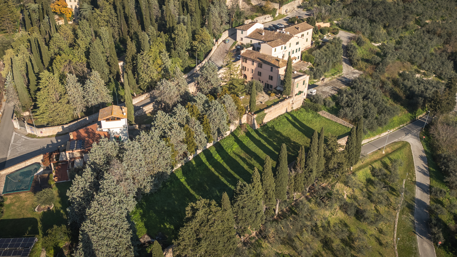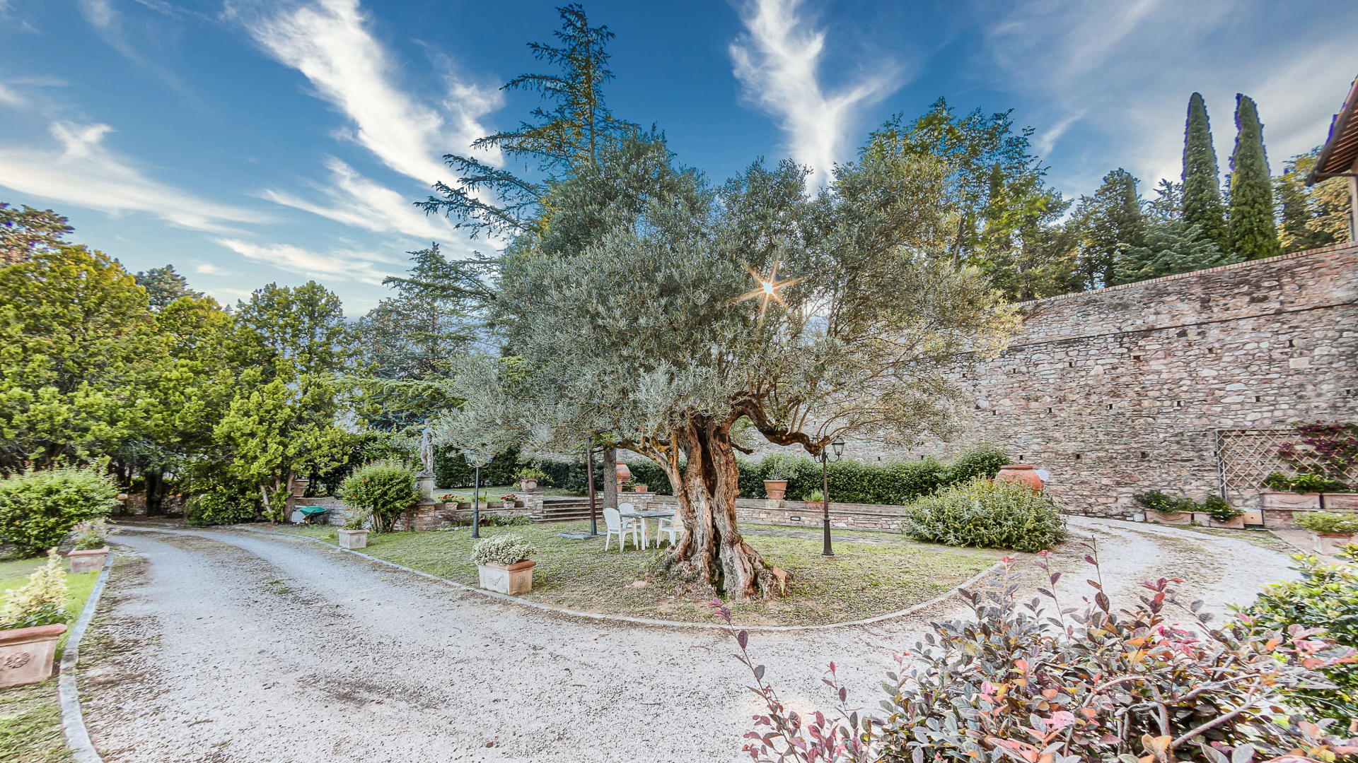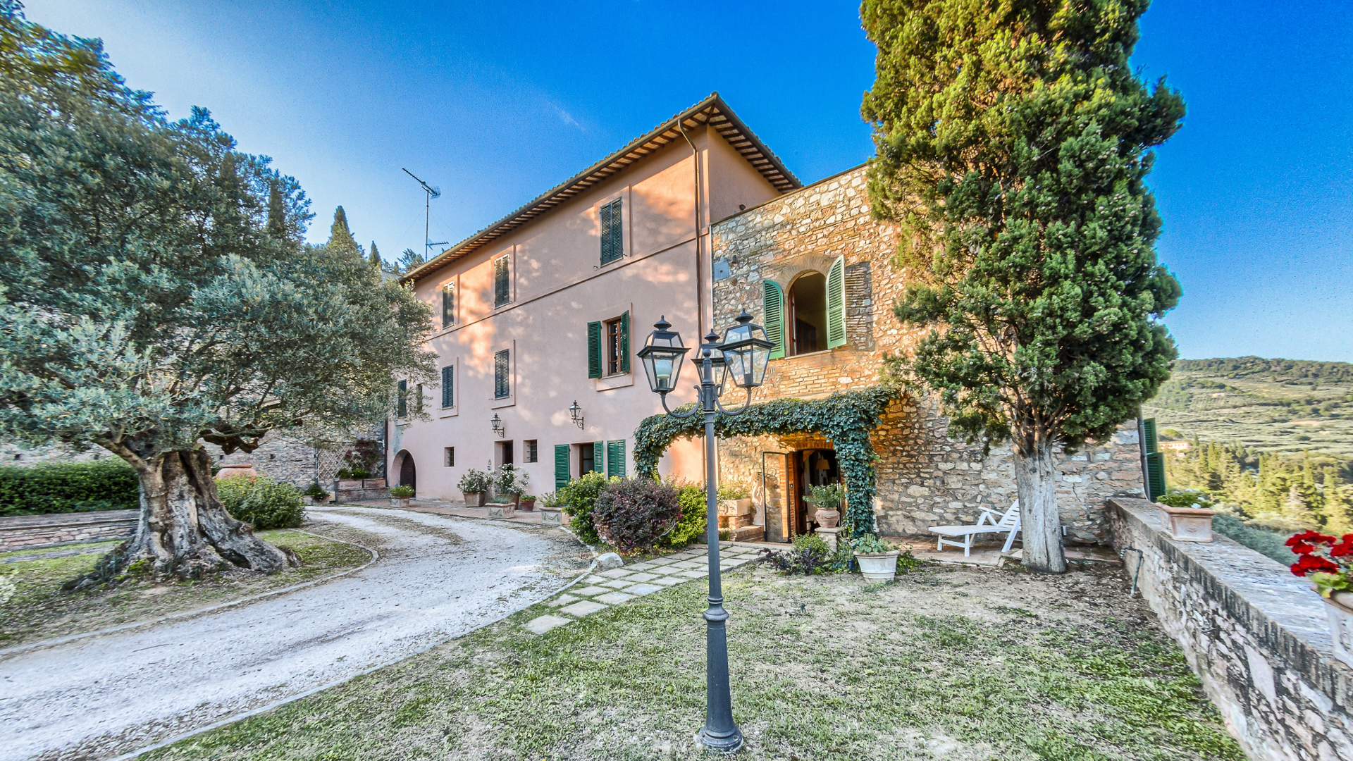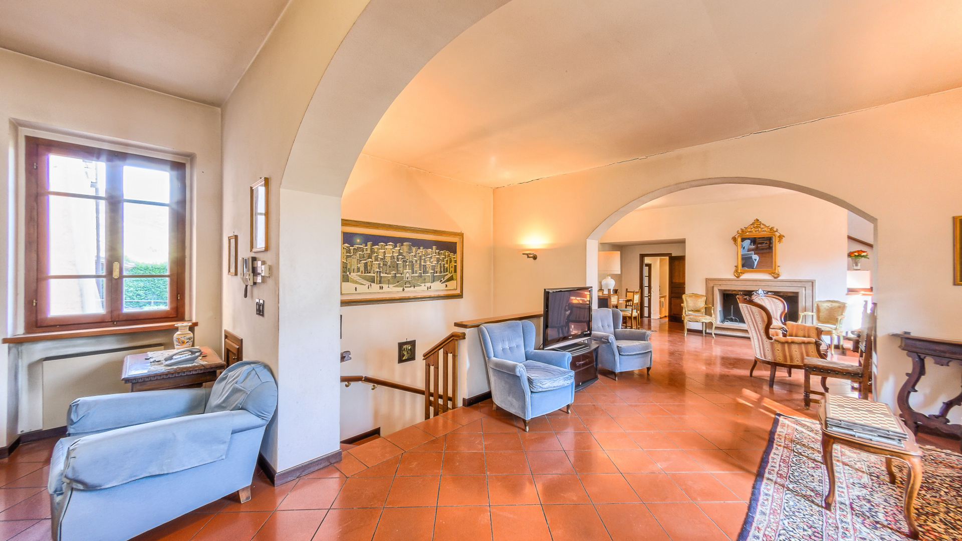 Ta oszałamiająca nieruchomość rozciąga się na powierzchni mieszkalnej brutto około 460 m2, rozłożonej na trzech poziomach, oferując przestronne, jasne pokoje doskonale zaaranżowane, aby zapewnić komfort i funkcjonalność. Na parterze podwójne wejście prowadzi do uroczego rustykalnego pokoju, idealnego na spotkania towarzyskie, uzupełnionego kuchnią, dwiema łazienkami, przytulnym gabinetem i wygodnym garażem o powierzchni około 30 mkw. Spektakularne schody z terakoty prowadzą na pierwsze piętro, gdzie znajduje się potrójny reprezentacyjny salon, w pełni wyposażona kuchnia z kominkiem, dwie sypialnie i łazienka. Na drugim piętrze znajdują się dodatkowe miejsca do spania i relaksu: trzy przestronne dwuosobowe sypialnie, gabinet, łazienka i wspaniały taras o powierzchni około 50 m2, z którego można podziwiać niezrównany widok na otaczający krajobraz. Dopełnieniem tej niezwykle atrakcyjnej nieruchomości jest prywatny park o powierzchni około 3 900 m2, starannie utrzymany i zagospodarowany, idealny do relaksu na świeżym powietrzu lub organizowania imprez w ekskluzywnym otoczeniu przyrody.