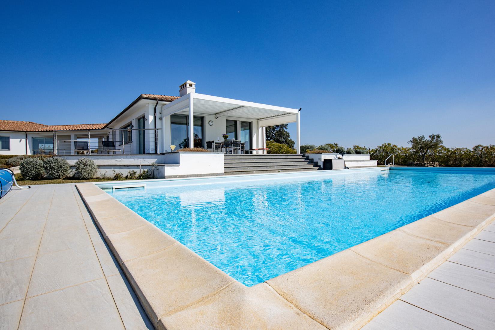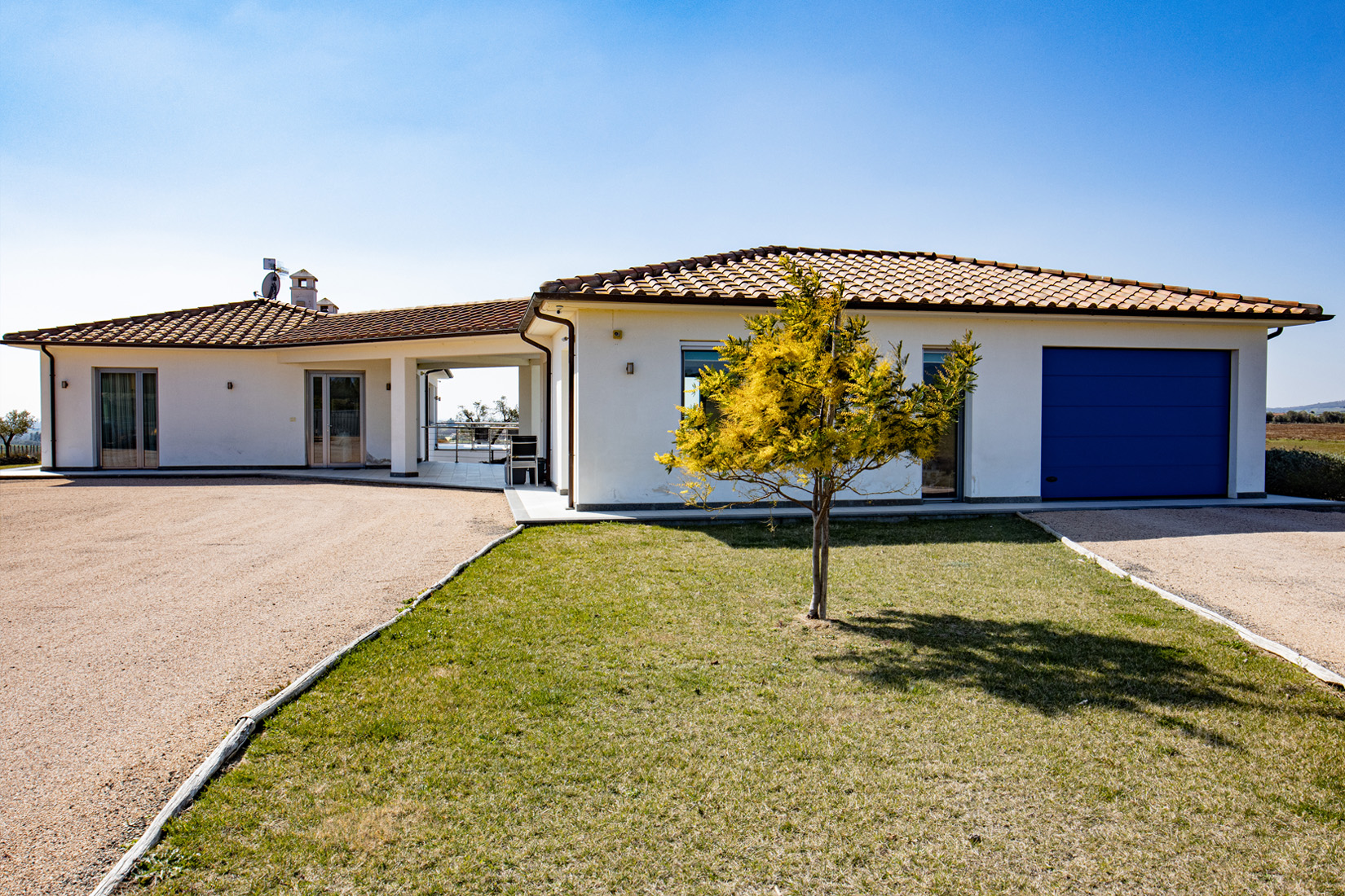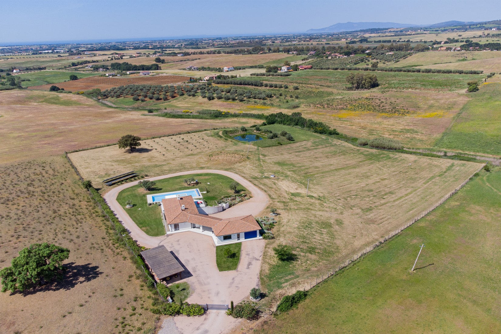 Wspaniała wolnostojąca willa o współczesnym smaku, składająca się z dwóch poziomów, w Pescia Romana, na granicy Toskanii i Lacjum. Nieruchomość znajduje się w doskonałej lokalizacji, wśród nadmorskich wzgórz i zaledwie 8 km od Marina di Pescia Romana, w niewielkiej odległości od Capalbio. Willa ma około 266 metrów kwadratowych. Na parterze znajduje się duży salon z kominkiem, przedpokój z garderobą i łazienką dla gości oraz duża, w pełni wyposażona, nowoczesna kuchnia połączona z jadalnią. Stąd duże okna wychodzą na taras ze wspaniałym widokiem na podgrzewany basen. W ten sposób wnętrze i zewnętrze komunikują się ze sobą dzięki arkadom i tarasom, które pozwalają podziwiać otaczający toskański krajobraz. Piętro niżej jest połączone z ogrodem i obejmuje dwie sypialnie, każda z łazienką. Główna sypialnia obejmuje również garderobę. Również na tym poziomie znajduje się duży pokój wykorzystywany jako gabinet z pralnią. Ganek łączy willę z aneksem rolniczym, obecnie wykorzystywanym jako pensjonat, który składa się z części dziennej z nowoczesną i wyposażoną kuchnią, dwuosobowej sypialni, łazienki i dużego garażu. Nieruchomość obejmuje około 3,4 hektara ziemi.