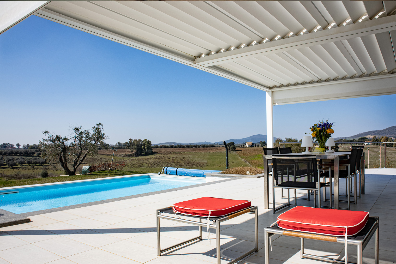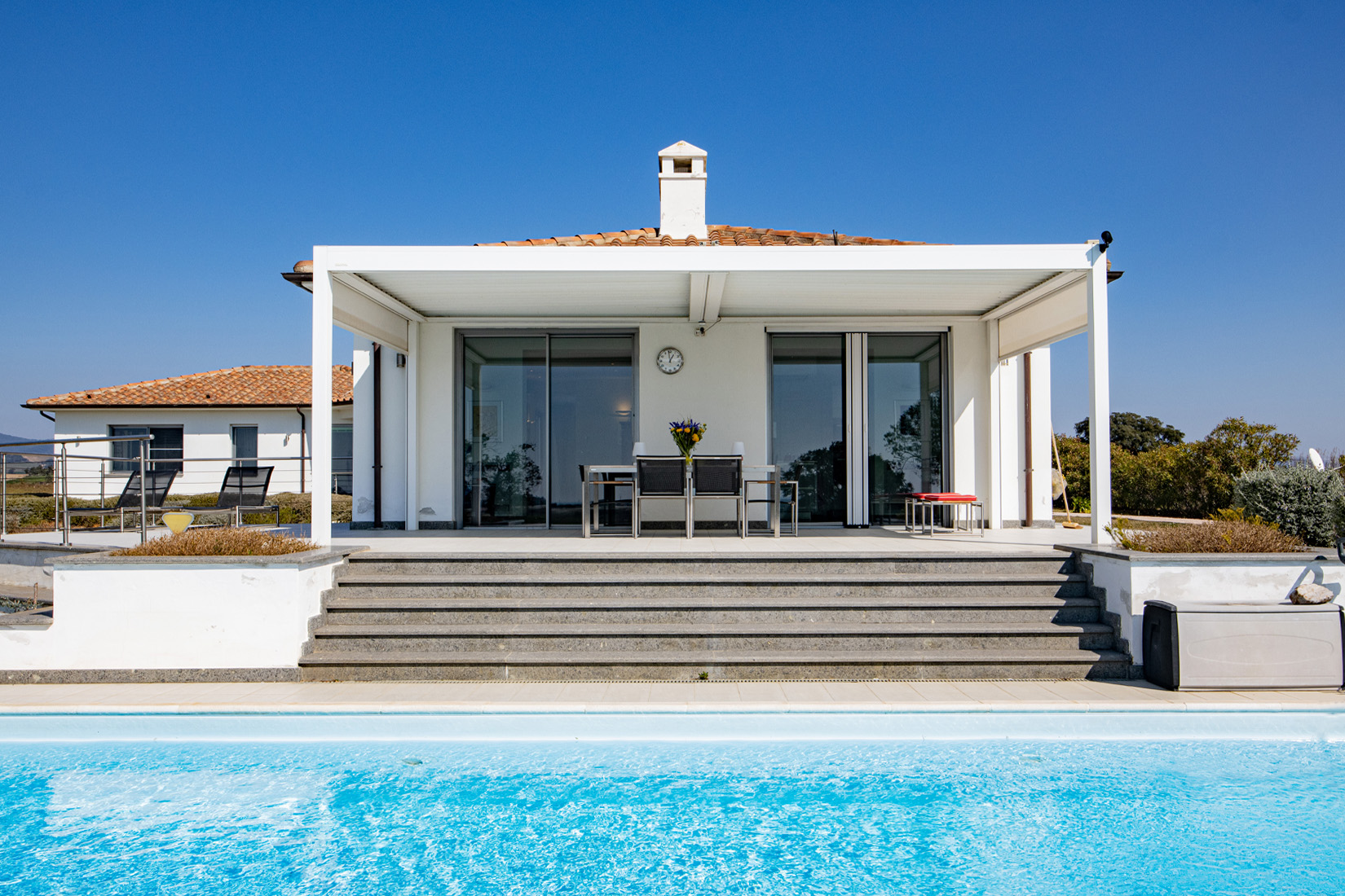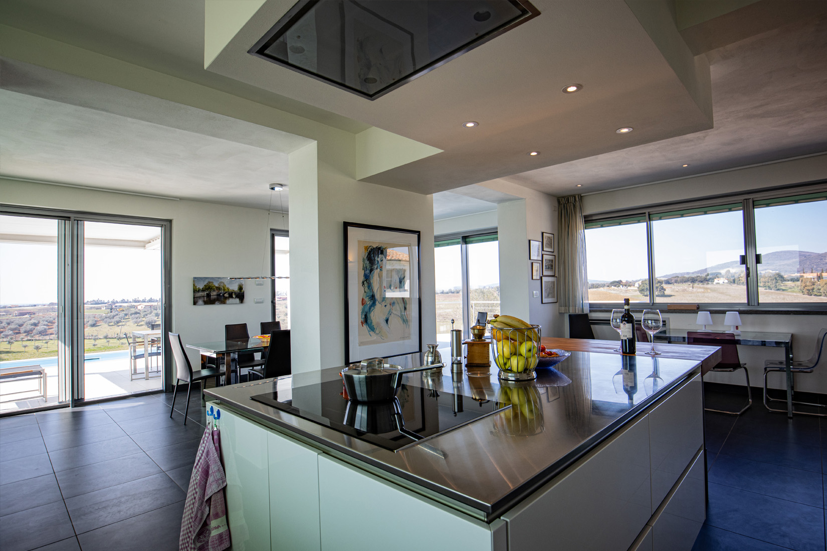 Wspaniała wolnostojąca willa o współczesnym smaku, składająca się z dwóch poziomów, w Pescia Romana, na granicy Toskanii i Lacjum. Nieruchomość znajduje się w doskonałej lokalizacji, wśród nadmorskich wzgórz i zaledwie 8 km od Marina di Pescia Romana, w niewielkiej odległości od Capalbio. Willa ma około 266 metrów kwadratowych. Na parterze znajduje się duży salon z kominkiem, przedpokój z garderobą i łazienką dla gości oraz duża, w pełni wyposażona, nowoczesna kuchnia połączona z jadalnią. Stąd duże okna wychodzą na taras ze wspaniałym widokiem na podgrzewany basen. W ten sposób wnętrze i zewnętrze komunikują się ze sobą dzięki arkadom i tarasom, które pozwalają podziwiać otaczający toskański krajobraz. Piętro niżej jest połączone z ogrodem i obejmuje dwie sypialnie, każda z łazienką. Główna sypialnia obejmuje również garderobę. Również na tym poziomie znajduje się duży pokój wykorzystywany jako gabinet z pralnią. Ganek łączy willę z aneksem rolniczym, obecnie wykorzystywanym jako pensjonat, który składa się z części dziennej z nowoczesną i wyposażoną kuchnią, dwuosobowej sypialni, łazienki i dużego garażu. Nieruchomość obejmuje około 3,4 hektara ziemi.
